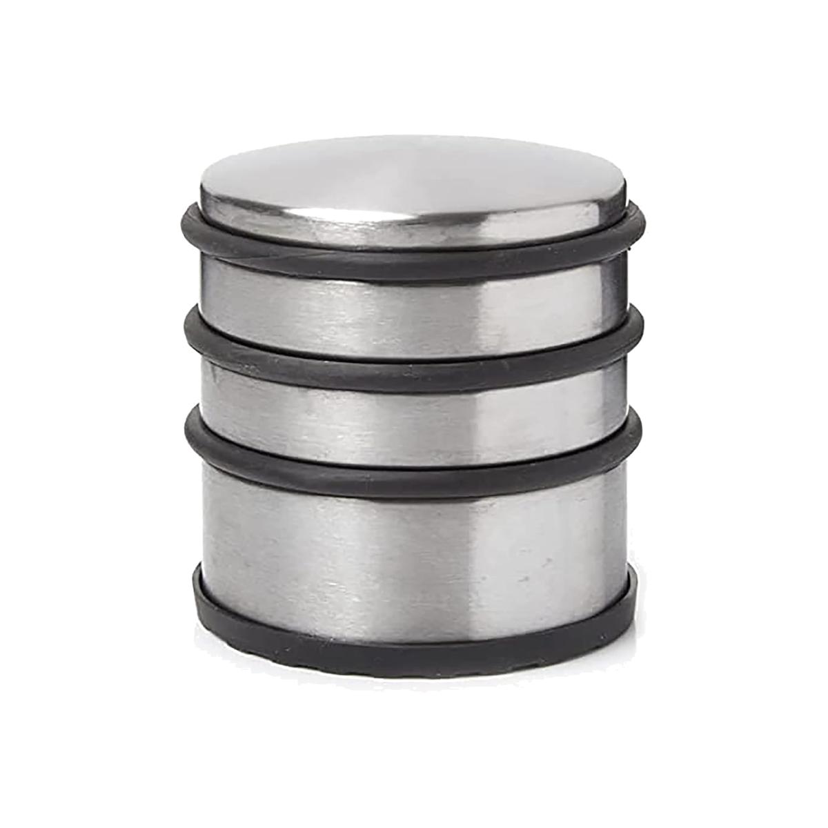 Free-standing heavy-duty door stopper. It is filled with cement and sand to keep even the heaviest of doors open. Finished with high-quality stainless steel for durable and long-lasting use. Surrounding the door stop are 3 rubber rings to protect doors from damage and contact with the steel. Solid rubber base to provide the perfect non-slip doorstop