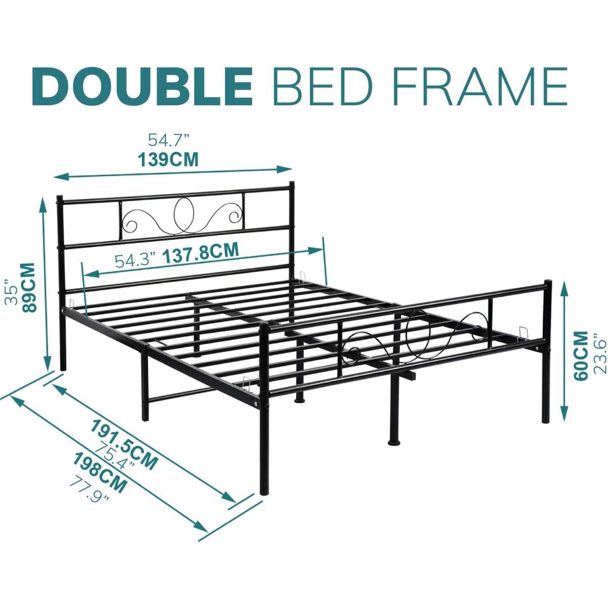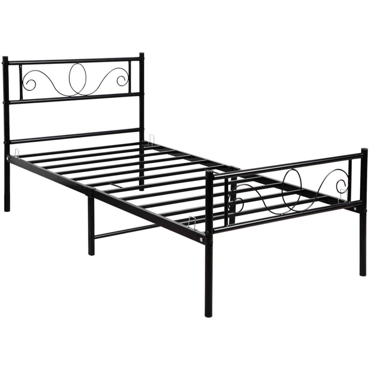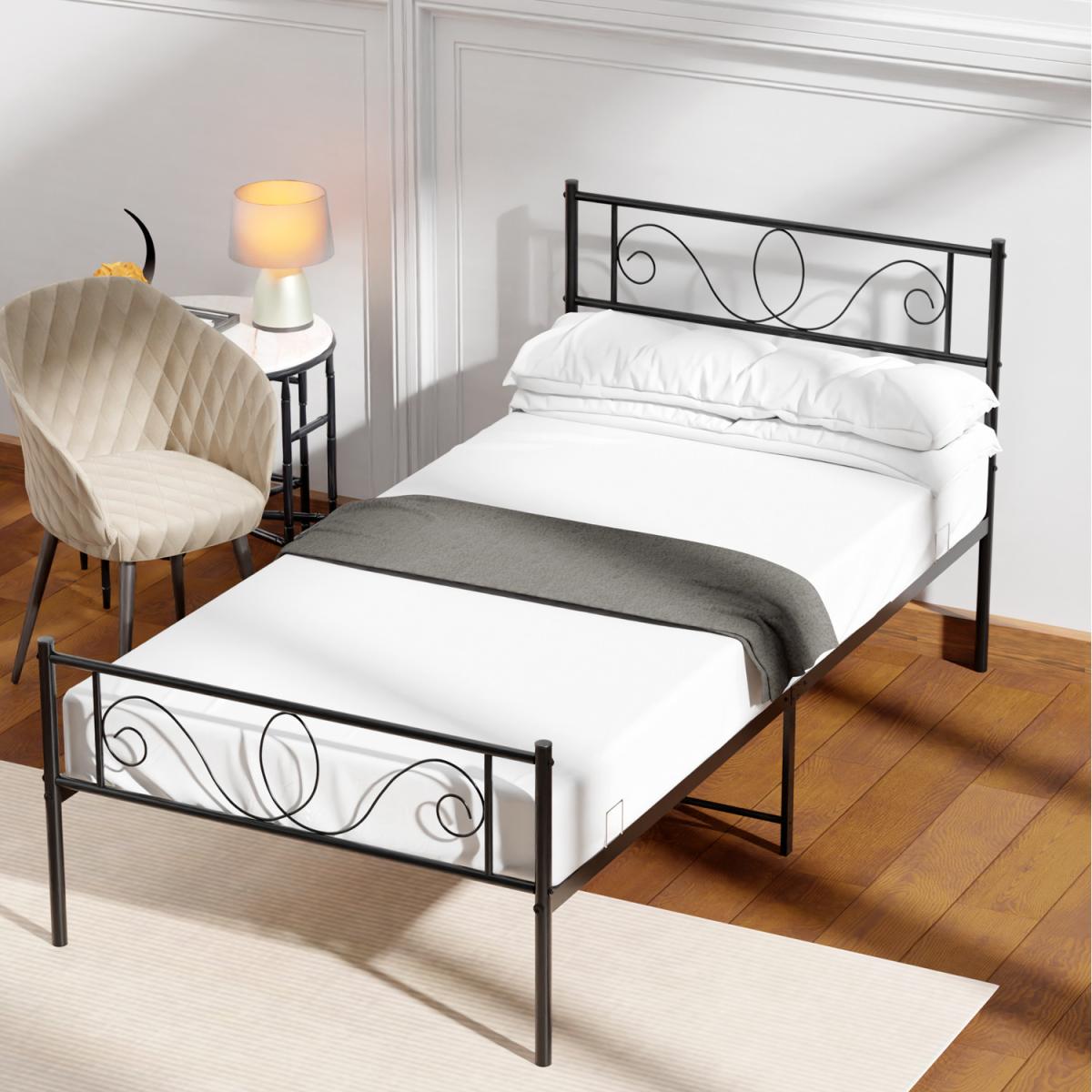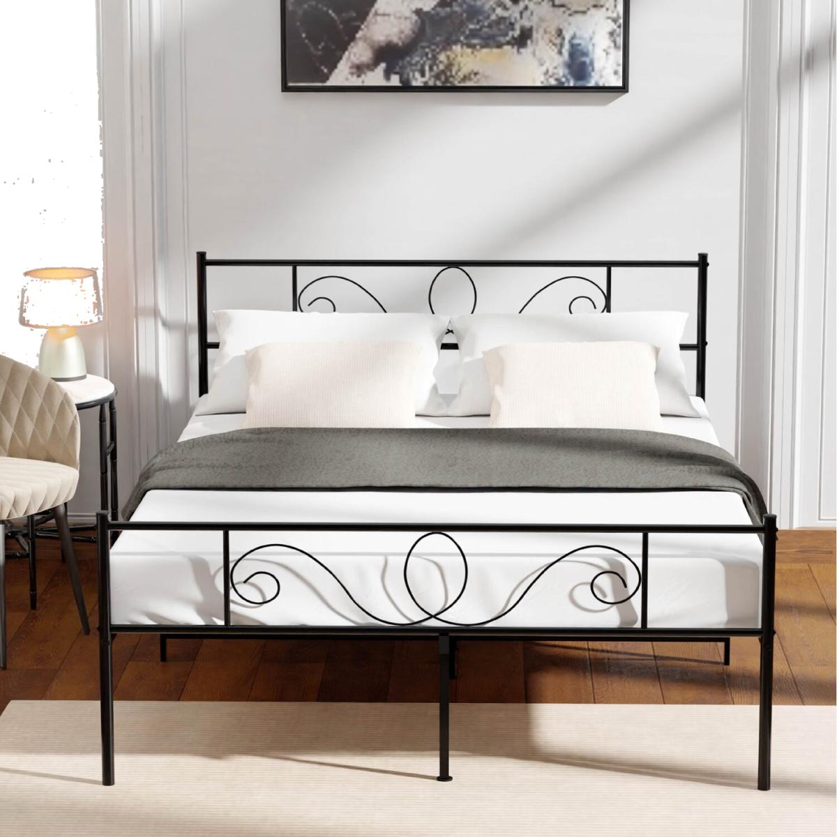 This sleek, black bed frame will introduce a touch of modern sophistication to your bedroom. Its unique double-metal scroll design imparts a sense of timeless elegance, offering both comfort and style. Experience enduring reliability with a steel frame and a powder-coated finish, providing resistance to wear and tear. Enjoy this bed frame for many years, as its durable construction ensures it withstands the test of time. Achieving a stylish bedroom look is effortless. It assembles quickly and easily, thanks to the straightforward instructions included, allowing you more time to relish your new space. Indulge in quality rest and relaxation with this spacious bed frame, perfect for a serene night's sleep. Its generous size allows for ample comfort and freedom of movement, making it ideal for curling up and enjoying a refreshing nap. You'll be pleased to discover that this bed frame's classic double metal scroll design makes it suitable for almost any bedroom decor. Its versatility enables you to effortlessly change the look of your bedroom, quickly and with ease.
