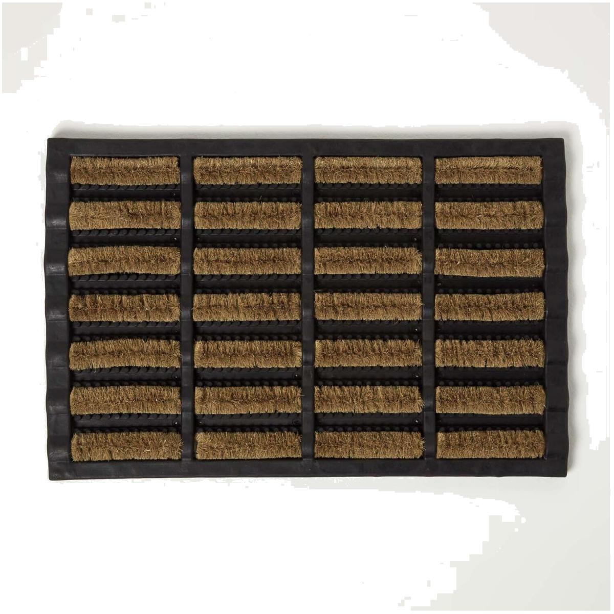 Durable heavy-duty boot scraper doormat. Measuring 60 x 40 cm this large doormat will help keep your home and carpets clean and tidy. Designed for outside use, these heavy-duty door mats sit outside front and back doors and feature thick coir rows and rubber scrapers, allowing you and your guests to clean their shoes before entering your home. With its thick rubber base, these non-slip doormats are suitable for all grounds including tiles, wood, pebbles and brick and will remain in place whatever the weather. Part of Homescapes' collection of doormats the range includes coir door mats, boots scrapers and boot trays.