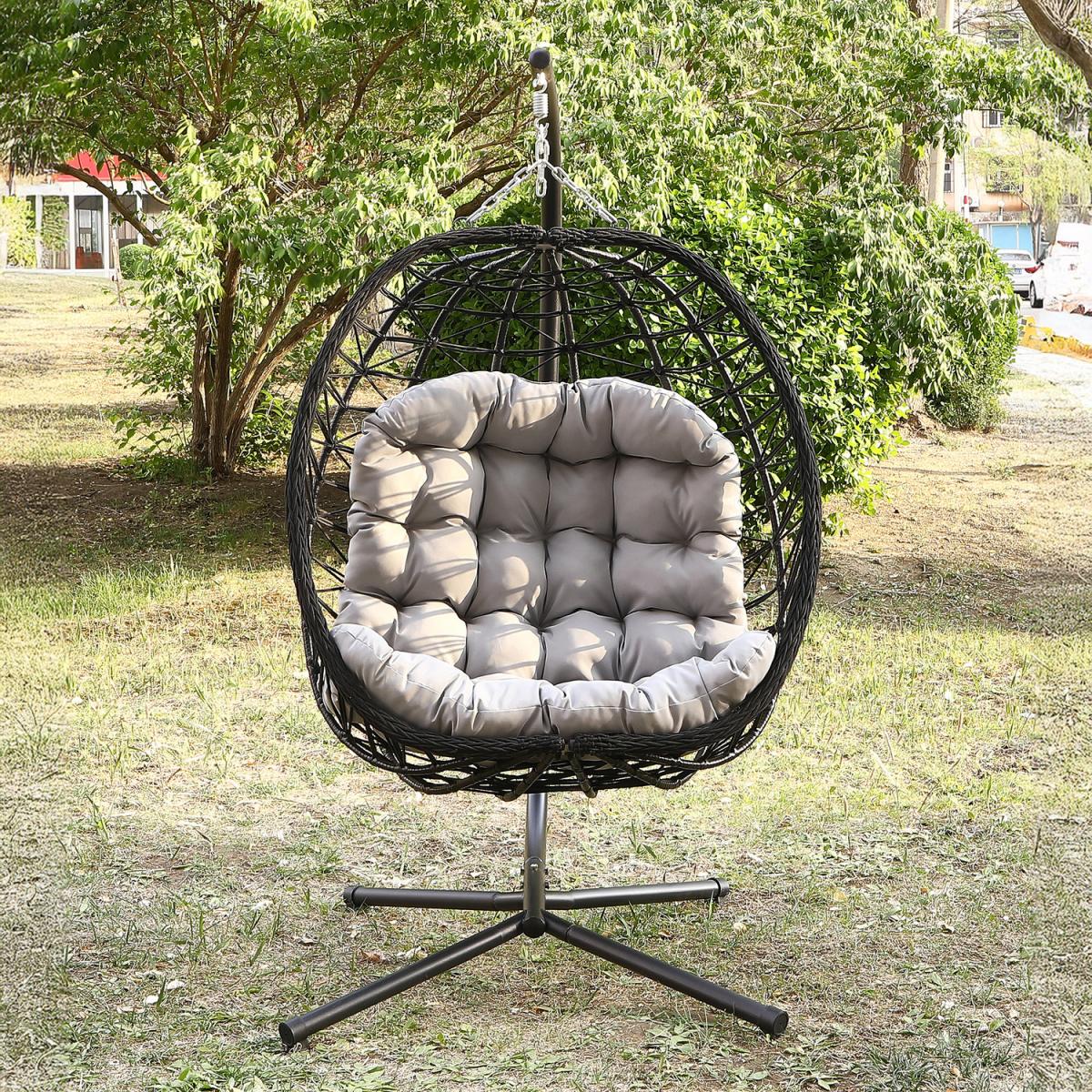 Elevate your outdoor comfort with the Hebden Garden Hanging Egg Chair, a sleek and modern hanging garden egg chair that adds a contemporary touch to any patio, balcony, or garden space. Featuring a sturdy black metal frame and a stylish black rattan basket, this striking chair offers both durability and aesthetic appeal. Designed for easy self assembly, its the perfect choice for those looking to enhance their outdoor living area without the hassle. With quick, efficient delivery across the UK, the Hebden Egg Chair makes stylish garden relaxation effortlessly achievable.