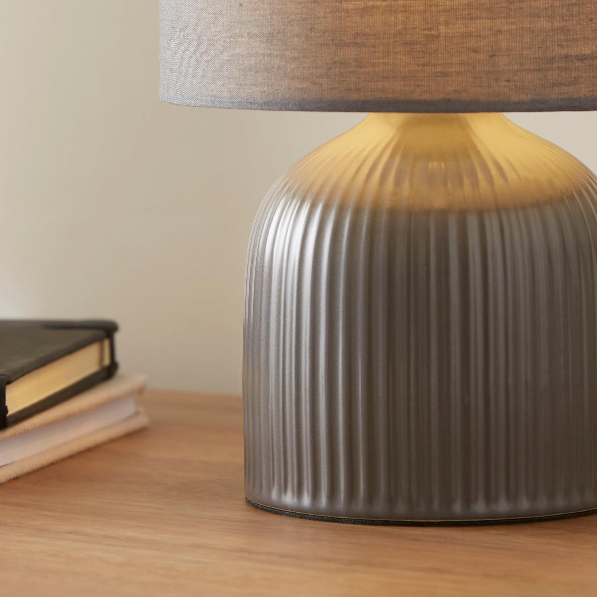 Hebe Ribbed Ceramic Table Lamp Graphite (Grey)
