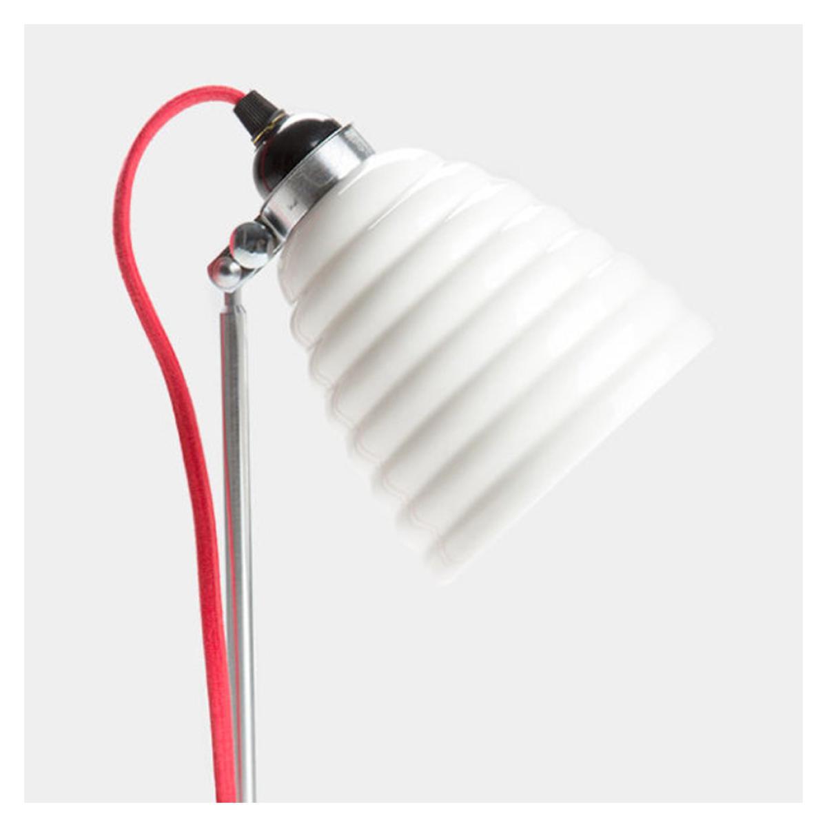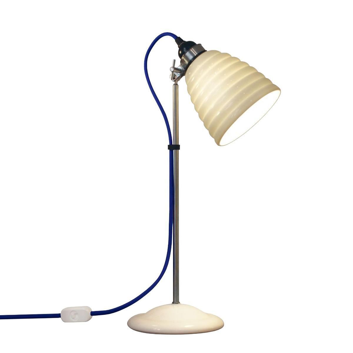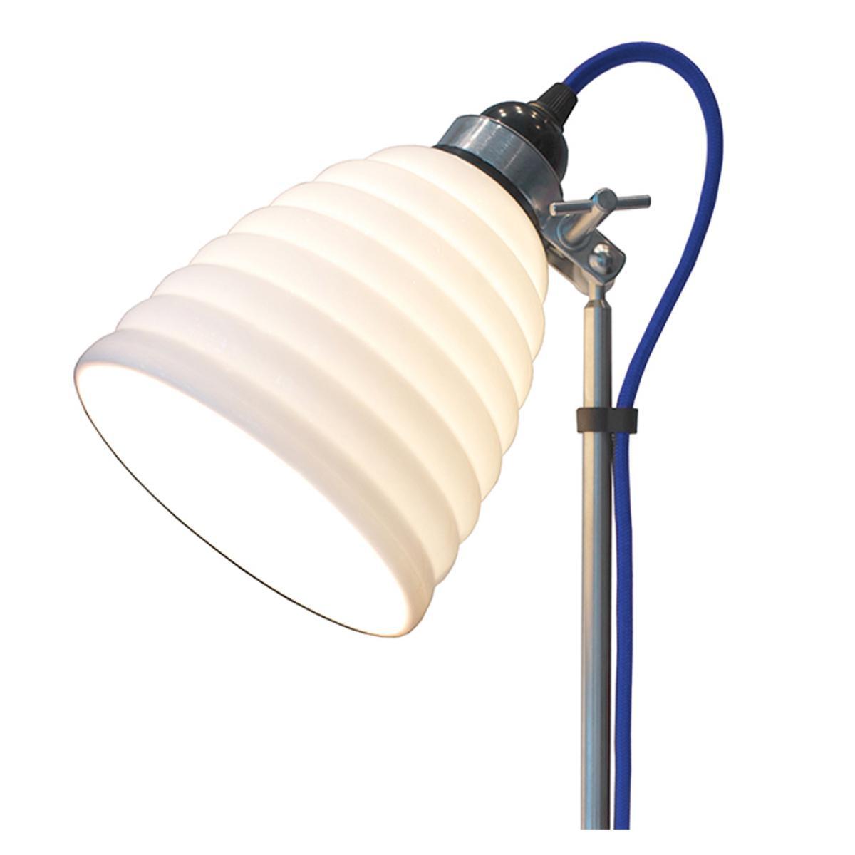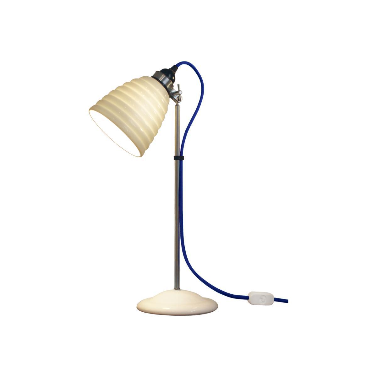 To celebrate the 21st anniversary of Original BTC Lighting and the centenary of Michelin House in 2011, Sir Terence Conran designed the elegant Hector Bibendum Table Lamp in blue and white. A sensitive, charming yet witty adaptation of the original bone-china model of the Hector light, the form of the Hector Bibendum Table Lamp is inspired by the corpulent shape of the iconic Michelin Man and the signature cotton-braided flex of Original BTC Lighting. This limited-edition piece, commissioned by BTC, is a fitting tribute to a relationship between Terence Conran and Original BTC that has lasted over 20 years. Slipcast by hand at the Original BTC Stoke-on-Trent factory, the bone-china shade and base are dipped in glaze after biscuit-firing to achieve the high gloss finish, and assembled together with a satin aluminium pole and cotton-braided cable. Requires: 1 x max 40w E27 bulb (not included)