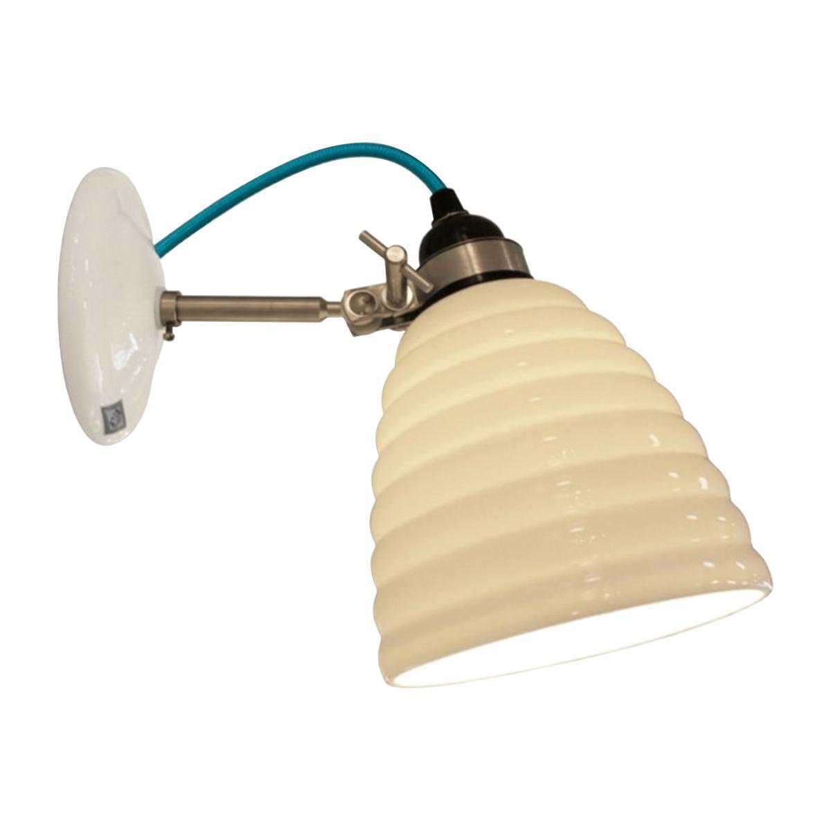 To celebrate the 21st anniversary of Original BTC Lighting and the centenary of Michelin House in 2011, Sir Terence Conran designed a range of lighting for BTC, entitled the Hector Bibendum collection. A sensitive, charming yet witty adaptation of the original bone-china model of the Hector light, the form of the new Hector Bibendum lamp is inspired by the corpulent shape of the iconic Michelin Man and the signature cotton-braided flex of Original BTC Lighting. This limited edition piece, commissioned by BTC, is a fitting tribute to a relationship between Terence Conran and Original BTC that has lasted over 20 years. Slipcast by hand at the Original BTC Stoke-on-Trent factory, the bone-china shade and base are dipped in glaze after biscuit-firing to achieve the high gloss finish, and assembled together with a satin aluminium pole and cotton-braided cable. Requires: 1 x Max E27 40W GLS bulb (not included)
