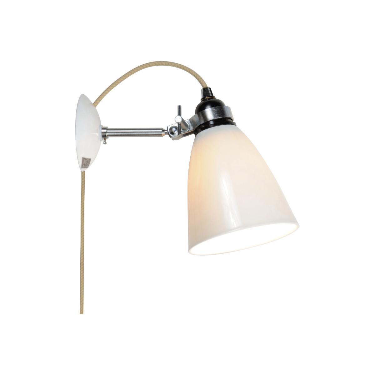 A British design classic in translucent bone china. With its moveable shade and smart cotton braided flex, the Hector wall light marries style and function. Practical, space-saving wall lights offer a subtle source of ambient light.