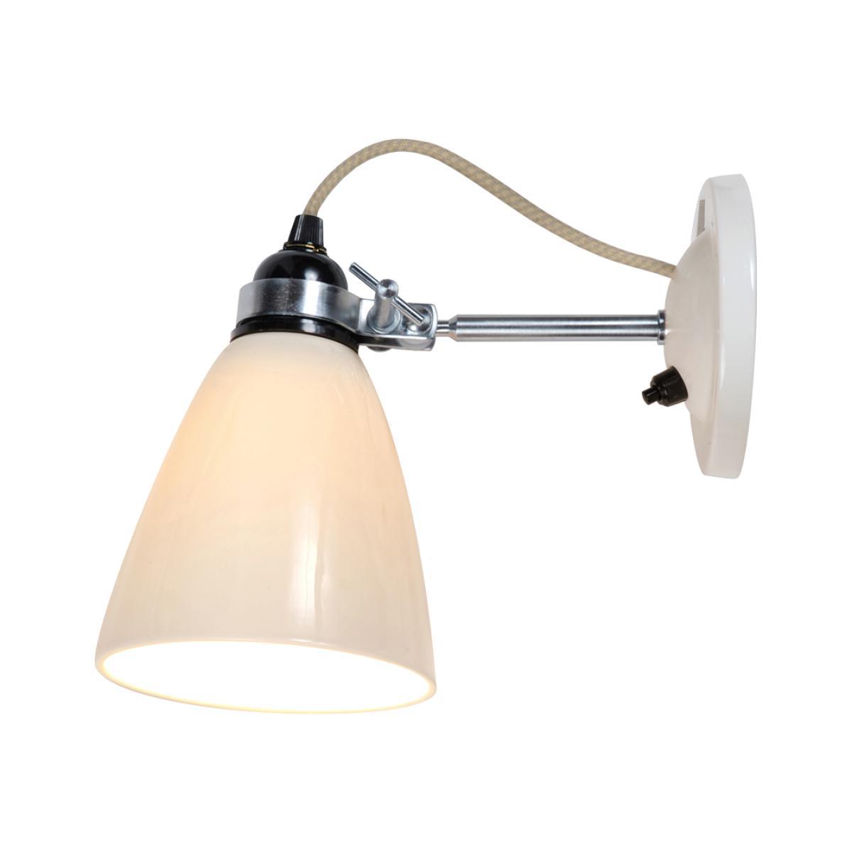 Designed by Peter Bowles for Original BTC, the charming Hector Medium Dome Switched Wall Light in white radiates a warm, soft light creating a relaxed homely atmosphere. Crafted from translucent bone china in Original BTC's Stoke-on-Trent workshop using traditional techniques by the region's master craftspeople, this space-saving light diffuses an ambient glow, emitting a flattering light suitable for a range of interiors. This British design classic is part of the Hector range which includes a selection of simple bone china pendant lamps, floor lamps and table lamps which perfectly marry style and function. Requires: 1 x Max 40W E27 GLS bulb (not included)Care instructions: Clean with a soft, damp cloth