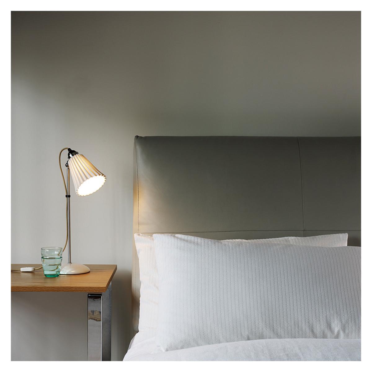 Designed by Peter Bowles for Original BTC, the natural medium-sized Hector Pleat Table Lamp radiates a warm, soft light for a relaxed homely atmosphere. A British classic, the space-saving Hector is crafted from translucent bone china in Original BTC's Stoke-on-Trent workshop using traditional techniques by the region's master craftspeople. When lit, the pleated natural china lampshade offers a translucent glow that allows for a warm diffused light, and the adjustable bracket ensures the lampshade can be directed wherever light is needed. Drawn to the versatility of bone china, designer Peter Bowles saw an opportunity to create something other than tableware with this time-honoured material. The result is his Hector Collection, which brilliantly showcases the attention to detail at the heart of every Original BTC light, right down to the braided cord, which was designed by Bowles and can be found on every light his company creates. Requires: 1x max. 40W E27 GLS bulb (not included).Care instructions: Clean with a soft, damp cloth.