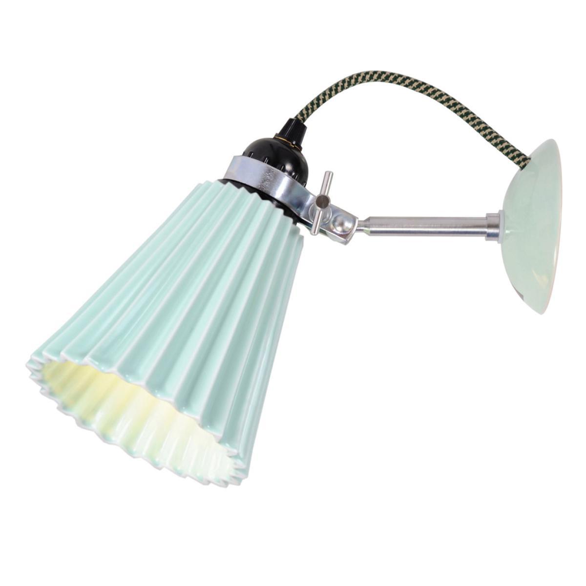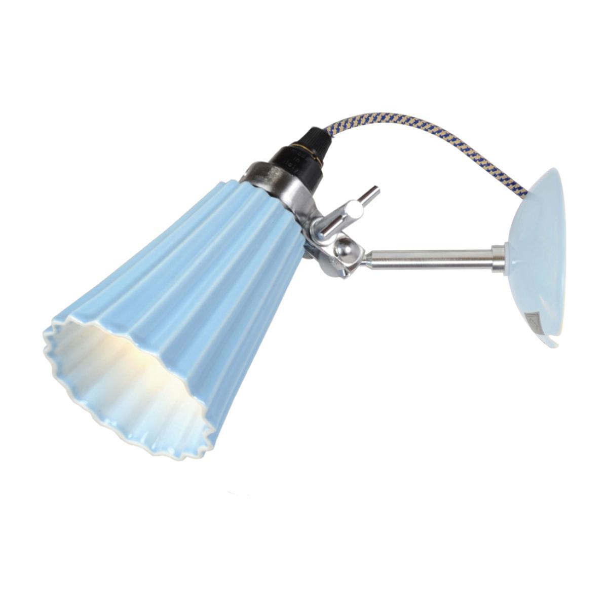 Designed by Peter Bowles for Original BTC, the charming small-sized, blue-hued Hector Pleat Wall Light radiates a warm, soft light creating a relaxed homely atmosphere. A British classic, the space-saving Hector is crafted from translucent bone china in Original BTC's Stoke-on-Trent workshop using traditional techniques by the region's master craftspeople. When lit, the pleated china lampshade has a translucent glow that allows for warm diffused light, and the adjustable bracket ensures the lampshade can be directed wherever light is needed. Drawn to the versatility of bone china, designer Peter Bowles saw an opportunity to create something other than tableware with this time-honoured material. The result is his Hector Collection, which brilliantly showcases the attention to detail at the heart of every Original BTC light, right down to the braided cord, which was designed by Bowles and can be found on every light his company creates. Requires: 1x max. 40W E14 GLS bulb (not included).Care instructions: Clean with a soft, damp cloth.