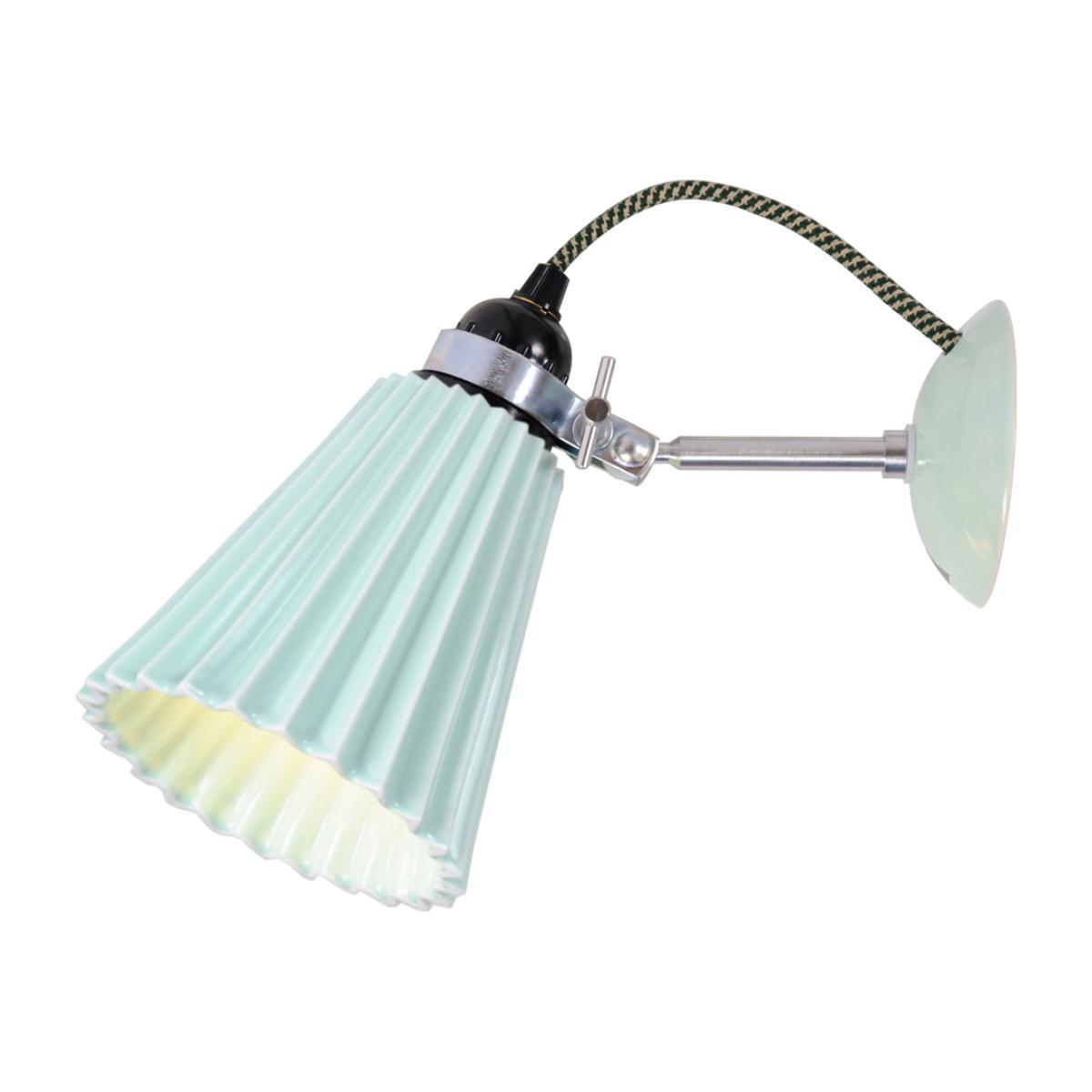 Designed by Peter Bowles for Original BTC, the charming small-sized, green-hued Hector Pleat Wall Light radiates a warm, soft light creating a relaxed homely atmosphere. A British classic, the space-saving Hector is crafted from translucent bone china in Original BTC's Stoke-on-Trent workshop using traditional techniques by the region's master craftspeople. When lit, the pleated china lampshade has a translucent glow that allows for warm diffused light, and the adjustable bracket ensures the lampshade can be directed wherever light is needed. Drawn to the versatility of bone china, designer Peter Bowles saw an opportunity to create something other than tableware with this time-honoured material. The result is his Hector Collection, which brilliantly showcases the attention to detail at the heart of every Original BTC light, right down to the braided cord, which was designed by Bowles and can be found on every light his company creates. Requires: 1x max. 40W E14 GLS bulb (not included).Care instructions: Clean with a soft, damp cloth.