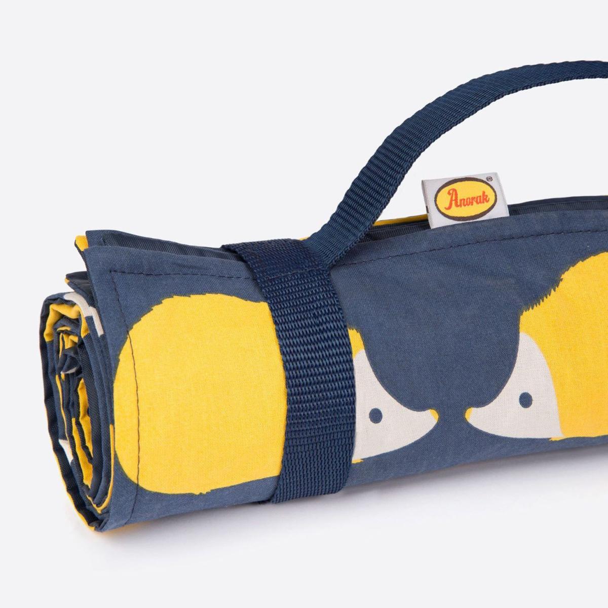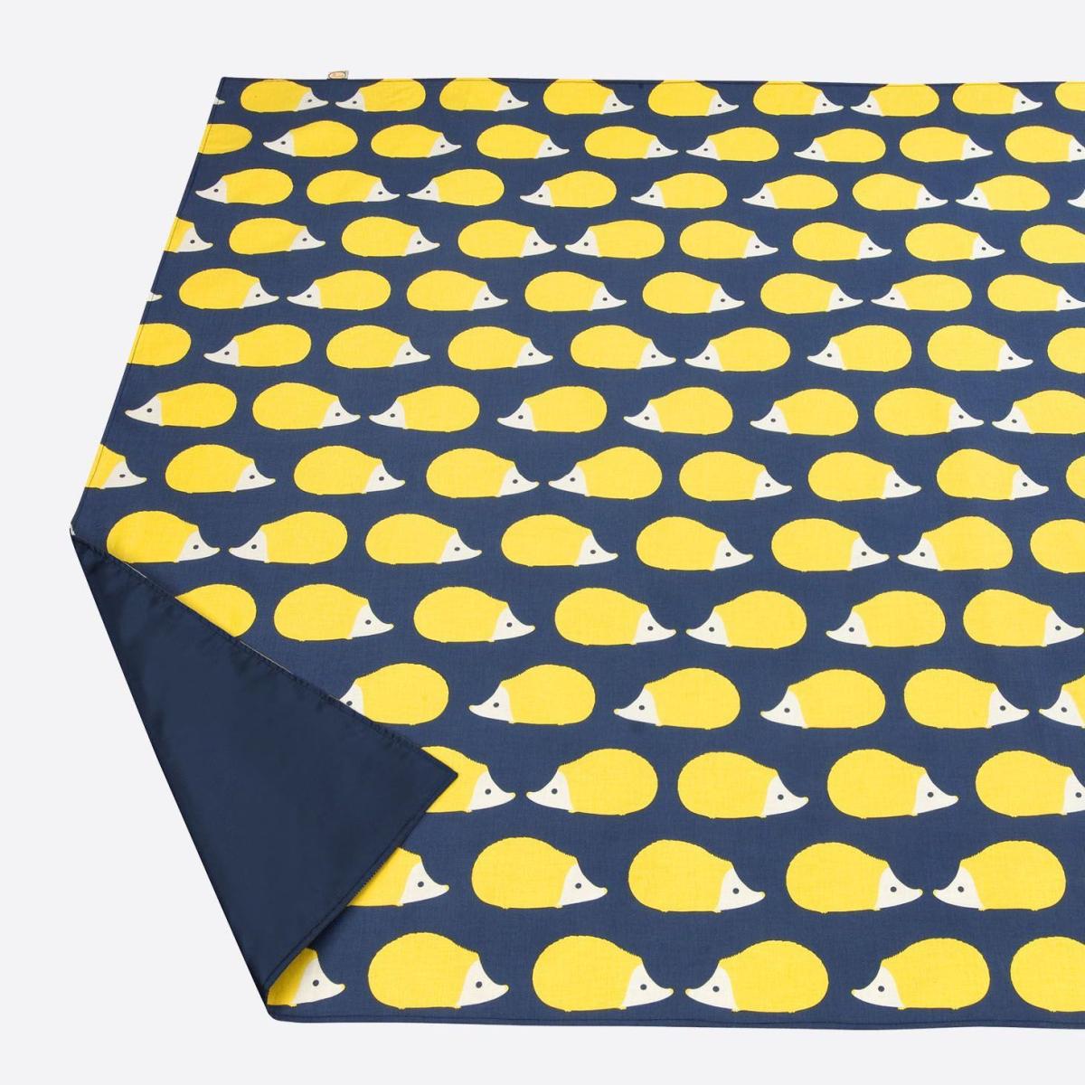 A vibrant blanket with a waterproof reverse and a trail of curious colourful hedgehogs to brighten up your picnic.