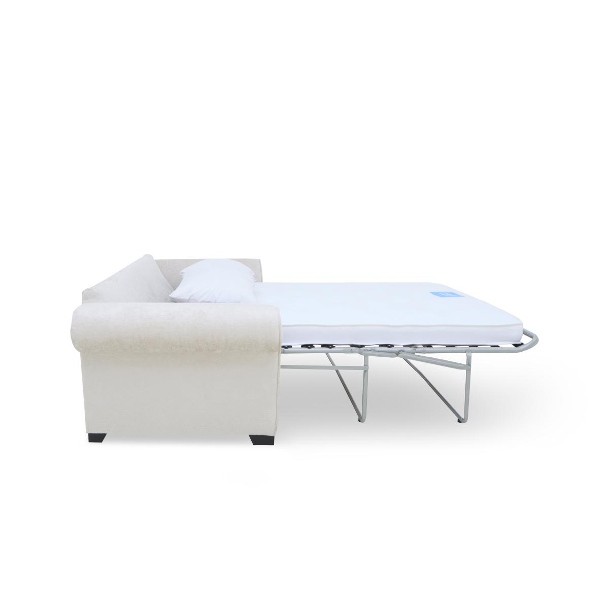 Your guests will enjoy a proper night’s sleep with the sofa beds from our Hedingham range – and you’ll get the stylish living room sofa you've always wanted. Alongside elegant sofa style with curved arms and beautiful upholstery, the sofas, sofa beds and chairs in the range really do put comfort first. Seat cushions have superb cold-cure moulded foam interiors that come with a reassuring 10-year guarantee, and sofa beds are offered with a choice of coil sprung and pocket sprung mattresses. The collection also features plenty of pieces to round out the look, including an armchair, swivel accent chairs and two sizes of storage footstools. The Hedingham collection is handcrafted in the UK exclusively for Furniture Village. Here’s the perfect sofa bed for a smaller living room – by day and by night. It has incredibly comfortable cold-cure moulded foam seat cushions and a deluxe pocket spring mattress. Why you'll love it With beautiful curved arms, this deluxe sofa bed makes relaxing more elegant. And it’s the effortless way to turn a living space into a guest room. Exceptionally comfortable – as a sofa and as a sofa bed. With premium-quality cold-cure moulded foam seat cushioning. Seat cushions even come with a 10-year guarantee. Guests will enjoy a great night’s sleep on the deluxe pocket spring mattress. This reversible mattress is 120 cm wide – that’s a small double. Quilted edges, superior fillings and an Egyptian cotton cover. Super-easy 2-fold mechanism converts this sofa into a sofa bed in no time. With 2 accent cushions included. In a choice of high-quality upholstery fabrics. Dark wood feet. Handcrafted in the UK exclusively for Furniture Village. This 2-seater deluxe sofa bed is part of our Hedingham range. What you need to know Medium comfort level. Seat suspension: zig-zag springs. Seat cushioning: cold-cure moulded foam. Cushioning is reversible. Back suspension: webbing. Back cushioning: fibre. Cushioning is reversible. Accent cushions: fibre. Feet are removable. Mattress: pocket spring. Please follow sofa bed opening instructions carefully. Forcing the mechanism will cause damage. This sofa bed’s ratchets will make a clicking sound while being adjusted. This is not a fault. Upholstery will be slightly relaxed to facilitate sofa bed mechanism. Plump and dress cushions daily. Unzip back cushions half way to facilitate plumping. Rotate and alternate seat cushions to minimise wear. Flattening and shading of heavy wear areas on pile fabrics is unavoidable. Clean regularly using a soft brush or vacuum with the curtain attachment. Deal with any spills promptly. Professional cleaning advised for oil- and grease-based stains. Please read our upholstery care guide for more advice. Item code: HEDI2SBDPLN-009