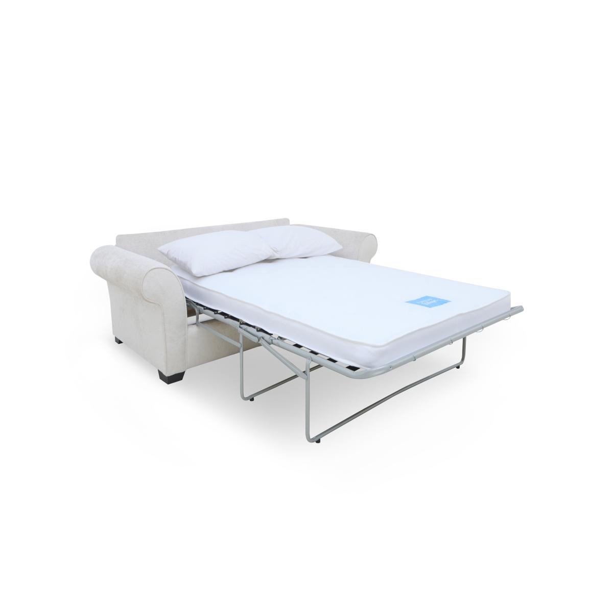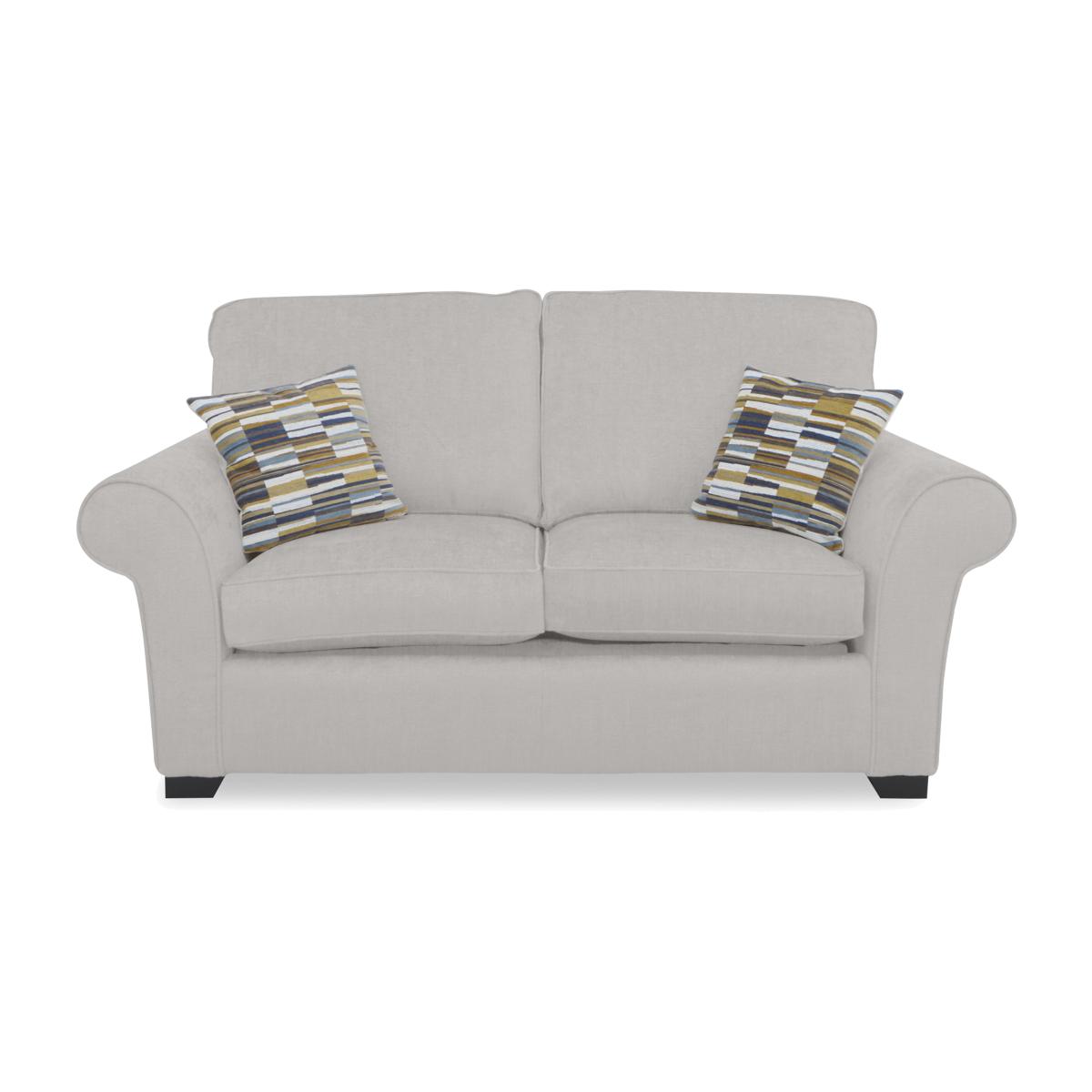 Your guests will enjoy a proper night’s sleep with the sofa beds from our Hedingham range – and you’ll get the stylish living room sofa you've always wanted. Alongside elegant sofa style with curved arms and beautiful upholstery, the sofas, sofa beds and chairs in the range really do put comfort first. Seat cushions have superb cold-cure moulded foam interiors that come with a reassuring 10-year guarantee, and sofa beds are offered with a choice of coil sprung and pocket sprung mattresses. The collection also features plenty of pieces to round out the look, including an armchair, swivel accent chairs and two sizes of storage footstools. The Hedingham collection is handcrafted in the UK exclusively for Furniture Village. With fabulously comfy cushioning, you’ll love relaxing on this elegant two-seater sofa bed. And your overnight guests will definitely appreciate its wonderful sprung mattress. Why you'll love it With beautiful curved arms, this sofa bed makes relaxing more elegant. And it’s the effortless way to turn a living space into a guest room. Exceptionally comfortable – as a sofa and as a sofa bed. With premium-quality cold-cure moulded foam seat cushioning. Seat cushions even come with a 10-year guarantee. Guests will enjoy a great night’s sleep on the supportive coil spring mattress. This no-turn mattress is 120 cm wide – that’s a small double. It has a layer of foam for extra comfort and an Egyptian cotton cover. Or choose the deluxe version of this sofa bed with a reversible pocket spring mattress. Super-easy 2-fold mechanism converts this sofa into a sofa bed in no time. With 2 accent cushions included. In a choice of high-quality upholstery fabrics. Dark wood feet. Handcrafted in the UK exclusively for Furniture Village. This 2-seater sofa bed is part of our Hedingham range. What you need to know Medium comfort level. Seat suspension: zig-zag springs. Seat cushioning: cold-cure moulded foam. Cushioning is reversible. Back suspension: webbing. Back cushioning: fibre. Cushioning is reversible. Accent cushions: fibre. Feet are removable. Mattress: coil spring. Please follow sofa bed opening instructions carefully. Forcing the mechanism will cause damage. This sofa bed’s ratchets will make a clicking sound while being adjusted. This is not a fault. Upholstery will be slightly relaxed to facilitate sofa bed mechanism. Plump and dress cushions daily. Unzip back cushions half way to facilitate plumping. Rotate and alternate seat cushions to minimise wear. Flattening and shading of heavy wear areas on pile fabrics is unavoidable. Clean regularly using a soft brush or vacuum with the curtain attachment. Deal with any spills promptly. Professional cleaning advised for oil- and grease-based stains. Please read our upholstery care guide for more advice. Item code: HEDI2SBSPLN-009