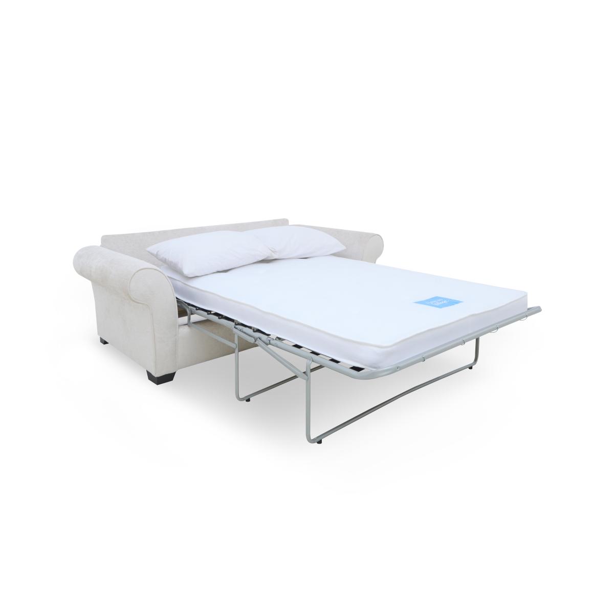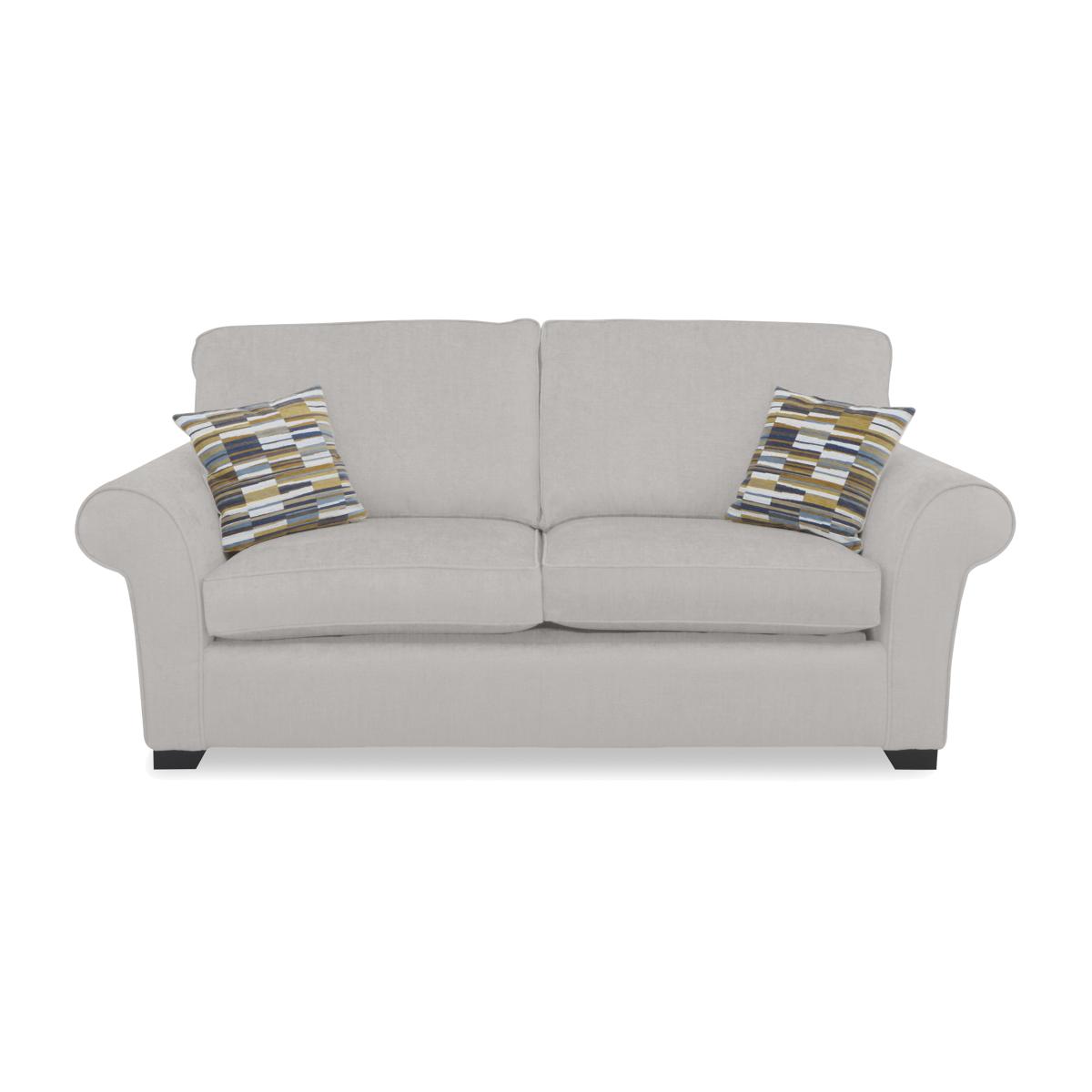 Your guests will enjoy a proper night’s sleep with the sofa beds from our Hedingham range – and you’ll get the stylish living room sofa you've always wanted. Alongside elegant sofa style with curved arms and beautiful upholstery, the sofas, sofa beds and chairs in the range really do put comfort first. Seat cushions have superb cold-cure moulded foam interiors that come with a reassuring 10-year guarantee, and sofa beds are offered with a choice of coil sprung and pocket sprung mattresses. The collection also features plenty of pieces to round out the look, including an armchair, swivel accent chairs and two sizes of storage footstools. The Hedingham collection is handcrafted in the UK exclusively for Furniture Village. Made to last with fabulous cold-cure moulded foam seat cushions and a very comfortable guest mattress, this stylish sofa bed will be appreciated by overnight visitors and family members alike. Why you'll love it With beautiful curved arms, this sofa bed makes relaxing more elegant. And it’s the effortless way to turn a living space into a guest room. Exceptionally comfortable – as a sofa and as a sofa bed. With premium-quality cold-cure moulded foam seat cushioning. Seat cushions even come with a 10-year guarantee. Guests will enjoy a great night’s sleep on the supportive coil spring mattress. This no-turn mattress is 140 cm wide – that’s wider than a standard double mattress. It has a layer of foam for extra comfort and an Egyptian cotton cover. Or choose the deluxe version of this sofa bed with a reversible pocket spring mattress. Super-easy 2-fold mechanism converts this sofa into a sofa bed in no time. With 2 accent cushions included. In a choice of high-quality upholstery fabrics. Dark wood feet. Handcrafted in the UK exclusively for Furniture Village. This 3-seater sofa bed is part of our Hedingham range. What you need to know Medium comfort level. Seat suspension: zig-zag springs. Seat cushioning: cold-cure moulded foam. Cushioning is reversible. Back suspension: webbing. Back cushioning: fibre. Cushioning is reversible. Accent cushions: fibre. Feet are removable. Mattress: coil spring. Please follow sofa bed opening instructions carefully. Forcing the mechanism will cause damage. This sofa bed’s ratchets will make a clicking sound while being adjusted. This is not a fault. Upholstery will be slightly relaxed to facilitate sofa bed mechanism. Plump and dress cushions daily. Unzip back cushions half way to facilitate plumping. Rotate and alternate seat cushions to minimise wear. Flattening and shading of heavy wear areas on pile fabrics is unavoidable. Clean regularly using a soft brush or vacuum with the curtain attachment. Deal with any spills promptly. Professional cleaning advised for oil- and grease-based stains. Please read our upholstery care guide for more advice. Item code: HEDI3SBSPLN-009