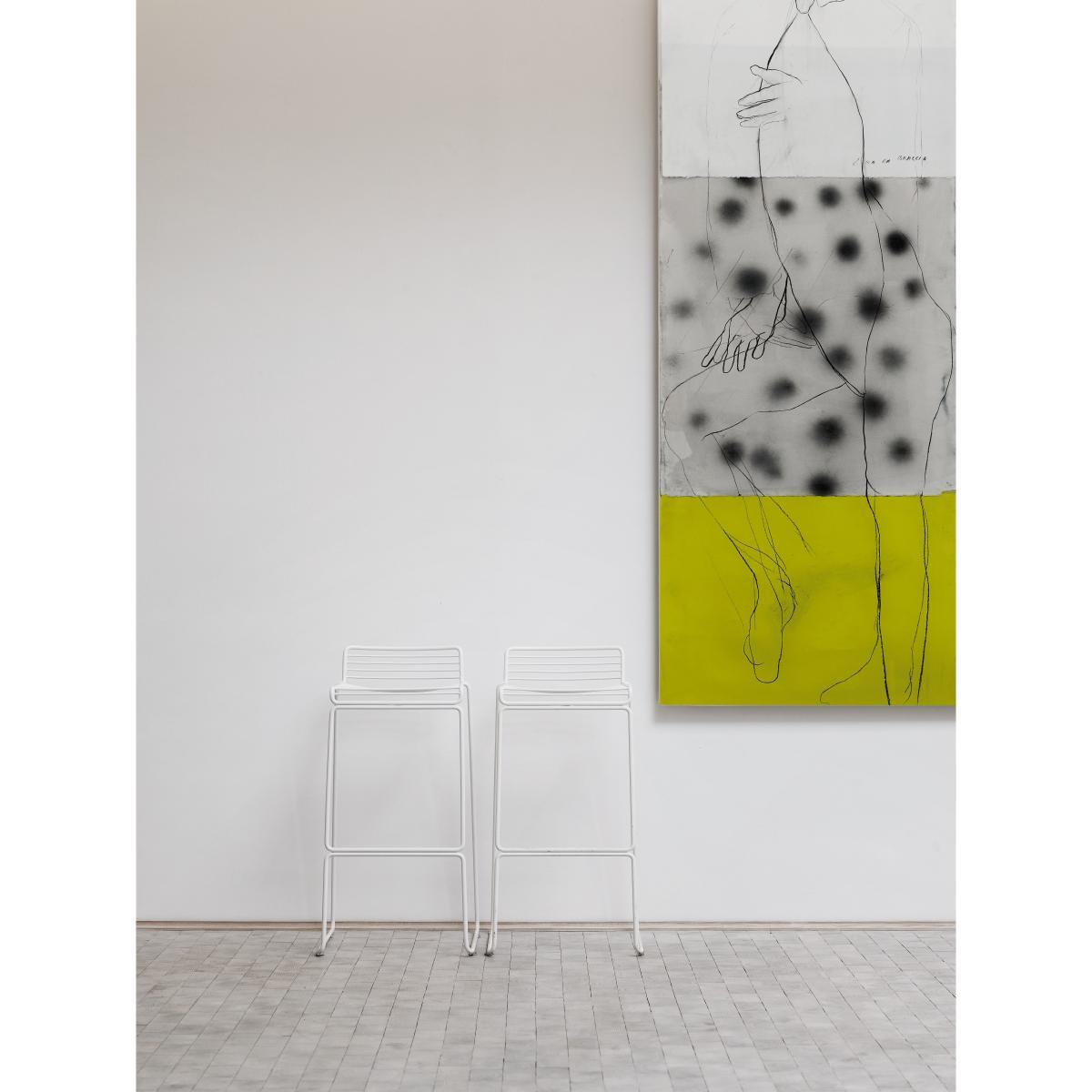 The idea for the Hee chairs derives from an ambition to make an eco-friendly chair where the materials are easily recyclable. Creating a chair from one single material has the environmental advantages of saving transportation between different production sites and simplifying the recycling of materials. The philosophy was taking an archetyppical chair and perfecting it in every single detail by lifting the design up a level, simplifying it and improving the usability. The starting point was to make a cool and basic chair that would fit most locations, modern but not so typical of the period, that it does not have a long life. There is nothing superfluous or ornamented about the chair and nothing can be removed without losing the function. The chair has a playful expression but does not let the design compromise its purpose. The mentality of using-and-throwing-away is not in harmony with the environmental ambition. Balancing the construction was essential, as was combining aesthetics and function by finding exactly the right thickness of the metal wire. The chair is made from 11 mm metal wire and the form refers to a sketch, a pencil drawing in three dimensions. The Hee collection comes as a chair, a low armchair and a bar stool. It is, among other places being used in the new Oslo Opera and the Australian parliament. Hee is stackable and electroplated prior to the powder coating, and they withstand weather throughout the year making it suitable for an outdoor set up.