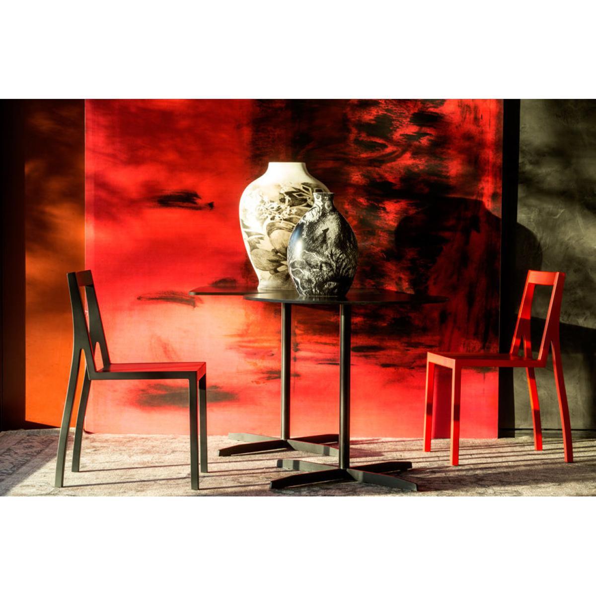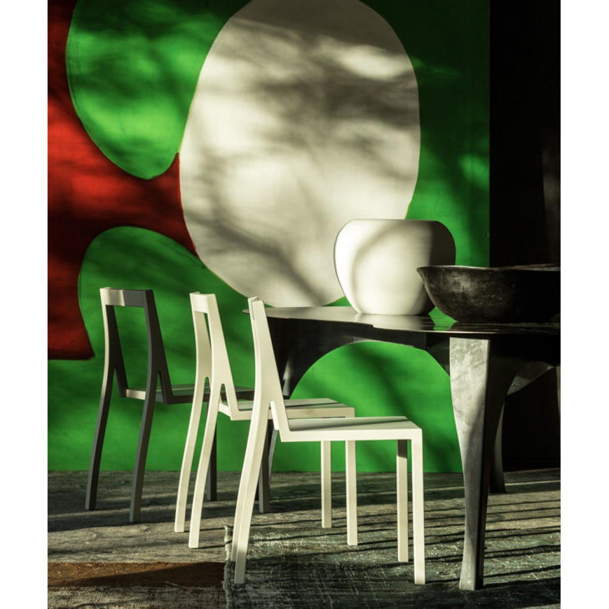 Heel, designed by Nendo for legendary Italian manufacturer Moroso, features a simple outline and form that is combined with conceptual depth and delight characteristic of the Japanese designer. For Sato, the definition of design is in its narrative. Design is inspired by the small moments in life that when internalized become a personal revelation, or an “Aha!” moment. Sato's “Aha!” moment happened while taking notice of a pair of stilettos. Inspired by their silhouette, he envisioned a simple design, later realized as the Heel chair. Each line is exact and purposeful, as if drawn in the air and materialized in wood. With Heel, Nendo strikes the perfect balance between simplicity and innovation, minimal and welcoming. While the back two legs of most traditional chairs continue the straight lines of a backrest, the back legs of Heel curve upward like the heel of a stiletto, meeting the central section of its backrest. The backrest is hollow, creating a structure both graceful and light. Made of wood lacquered in black or white or left natural, these modest, stackable chairs can make a striking statement in most any environment whether commercial or residential.