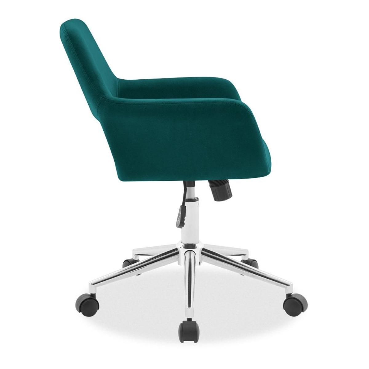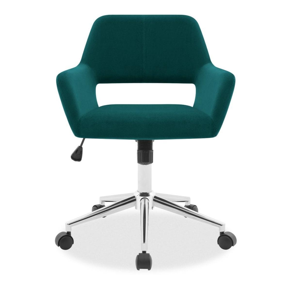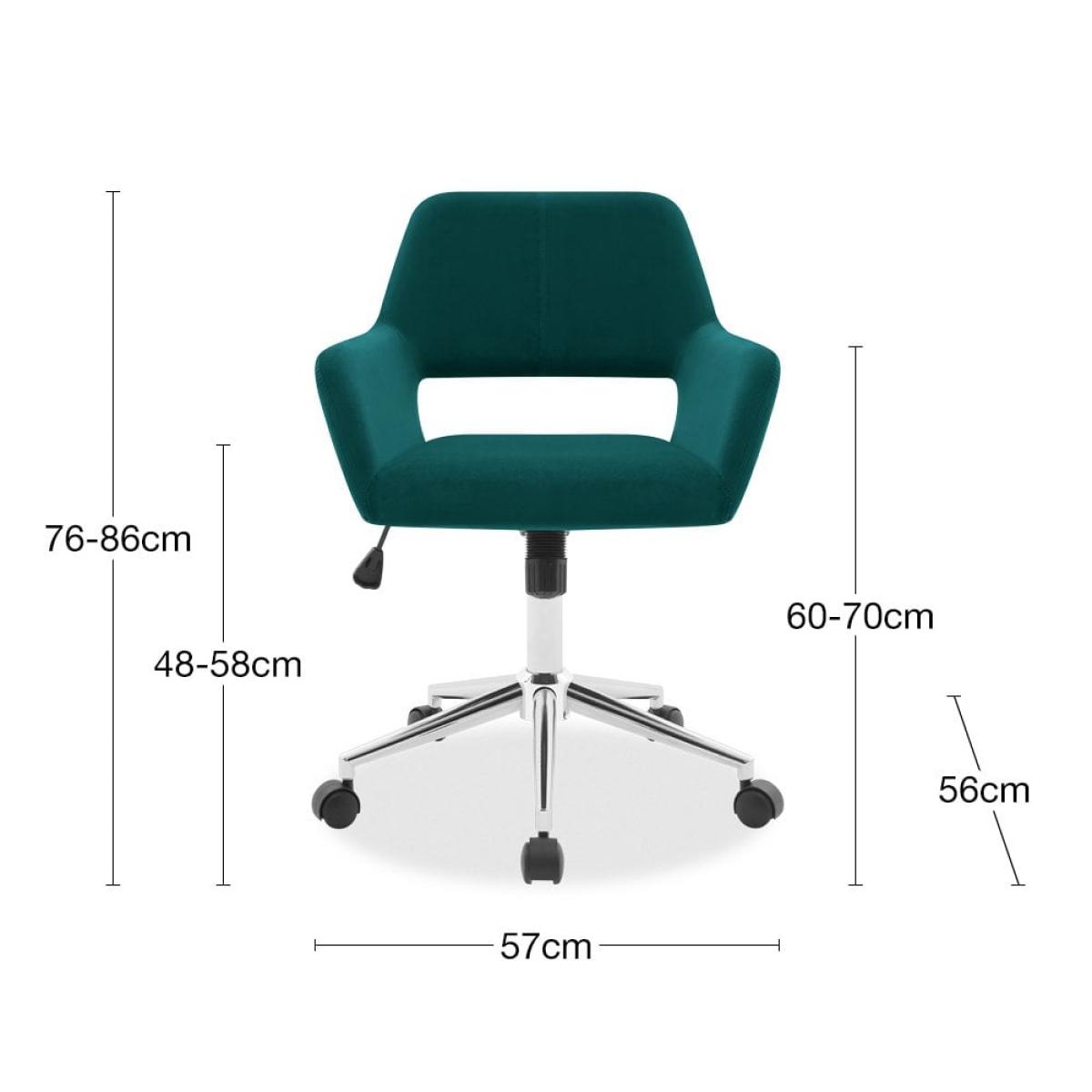 Start your working week feeling relaxed with our luxurious Art Deco-inspired Heidi swivel office chair, where working from home has never been so glamorous. Featuring; stunning teal velvet fabric, chrome metal legs on wheels and smooth armrests. The Heidi adds high-end richness to any home study, while the height-adjustable padded seat and curved backrest with a cut-out, lend to its retro design without compromising on comfort. Available in a range of stylish colours, our Heidi makes a charming office suite when teamed with our gorgeous office desks.