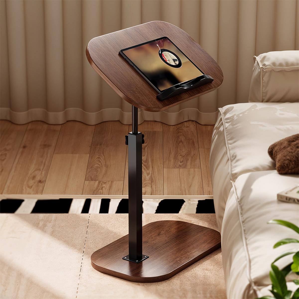 This overbed table is designed for maximum convenience and space efficiency. Its compact C-shaped frame easily fits beside a bed or sofa, supporting comfortable sitting positions. The adjustable height meets the personalized needs of different users, and the upgraded nut design ensures smooth and secure height adjustments. Anti-slip bars on the tabletop help prevent items from sliding off when tilted. Constructed with a sturdy iron frame and reinforced base, it offers excellent stability and load-bearing capacity. This versatile piece is ideal for small apartments, dorm rooms, and home offices, whether used as a mobile workstation, bedside table, or dining tray.