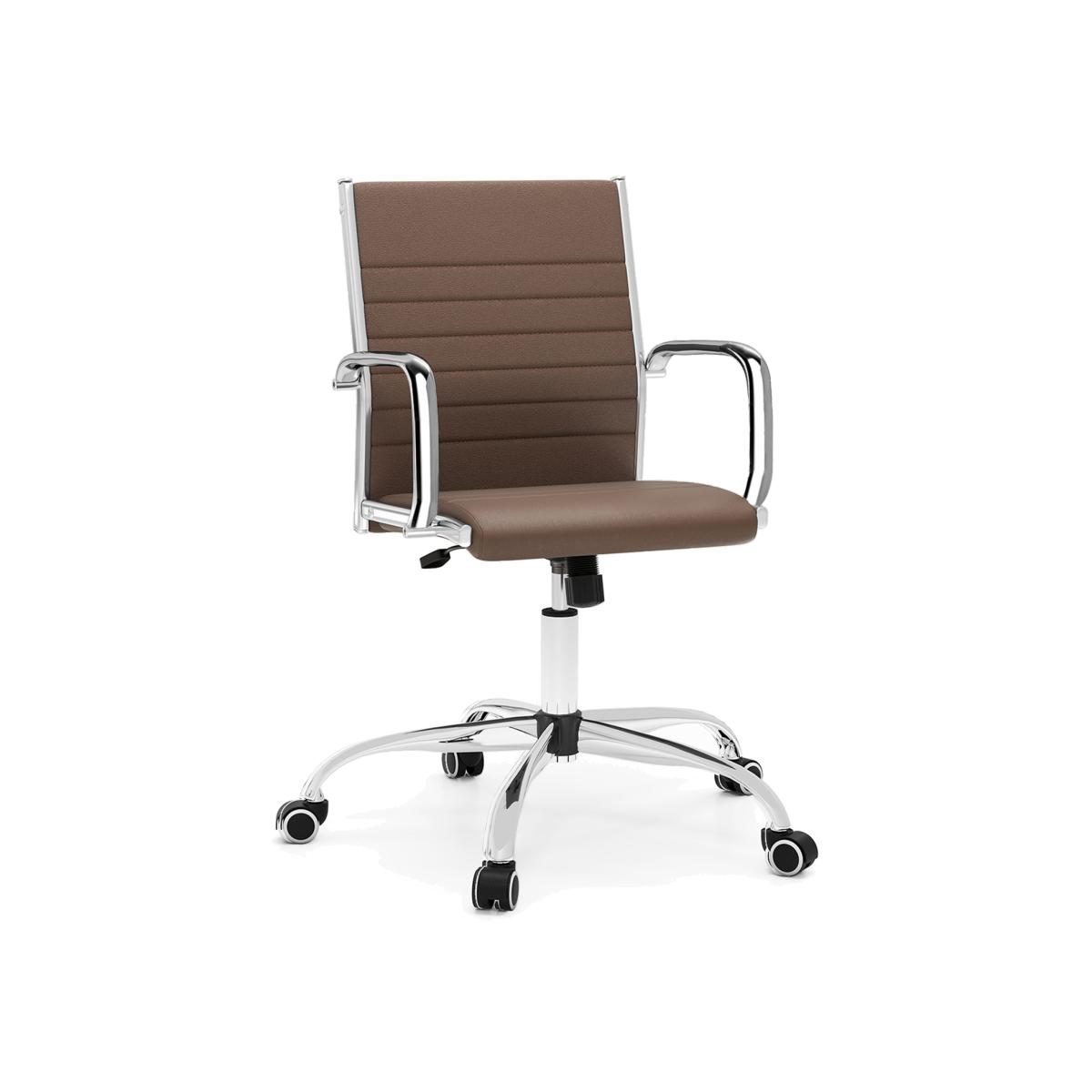 The desk chair is wrapped in soft PU leather and padded with elastic, supportive, and enduring sponge. Moreover, this 360-degree swivel chair boasts an S-shaped rocking backrest, cosy armrests, and an adjustable seat height. The heavy-duty home office chair comes with a 5-claw metal base that effortlessly supports up to 150 kg. Its modern ribbed design enhances your workspace aesthetics. With smooth-rolling universal wheels, this chair provides easy mobility across different surfaces. Perfect for conference rooms, reception areas, or private offices, this versatile chair caters to your busy workspace needs with style and functionality. Pamper yourself with exceptional seating comfort with the comfortable executive chair.
