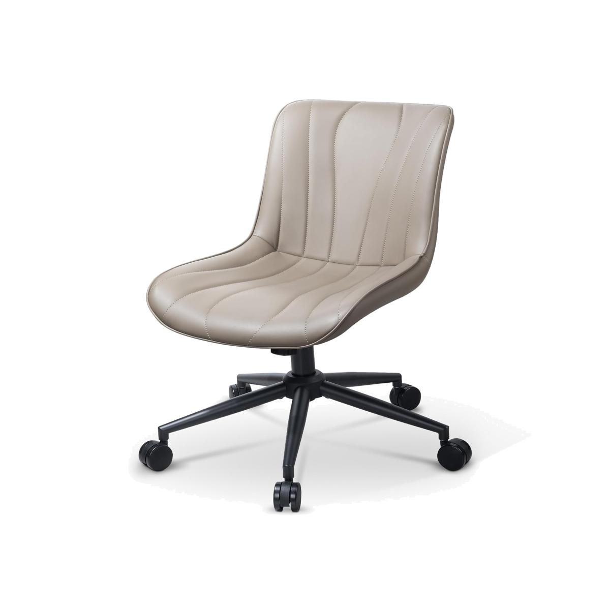 Designed for minimalists, this office chair features pure colors and clean lines. Its armless design makes it perfect for various settings, including as a dressing chair, bedroom chair, study chair, drafting chair, and more. The backrest and seat are wrapped in soft faux leather and upholstered padding, providing maximum comfort. The ergonomically curved design offers strong support for your lower back, making it ideal for long hours in the home office. The height of the computer chair can be easily adjusted to accommodate individuals of different heights. By pulling out the lever and adjusting the knob at the base, you can achieve a 15 degrees reclining rocking mode for different sitting positions. Built with a sturdy metal bracket, adjustable cylinder, steel base, and silent castors, this chair is both durable and stable. The premium PU leather is skin-friendly and easy to clean, ensuring long-lasting comfort and convenience. The package includes all necessary assembly tools and clear instructions, making setup quick and simple. Enjoy your new chair in no time with minimal effort.