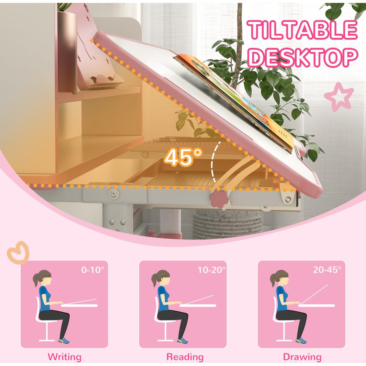 Height Adjustable Kids Desk and Chair Set with Drawer - Pink