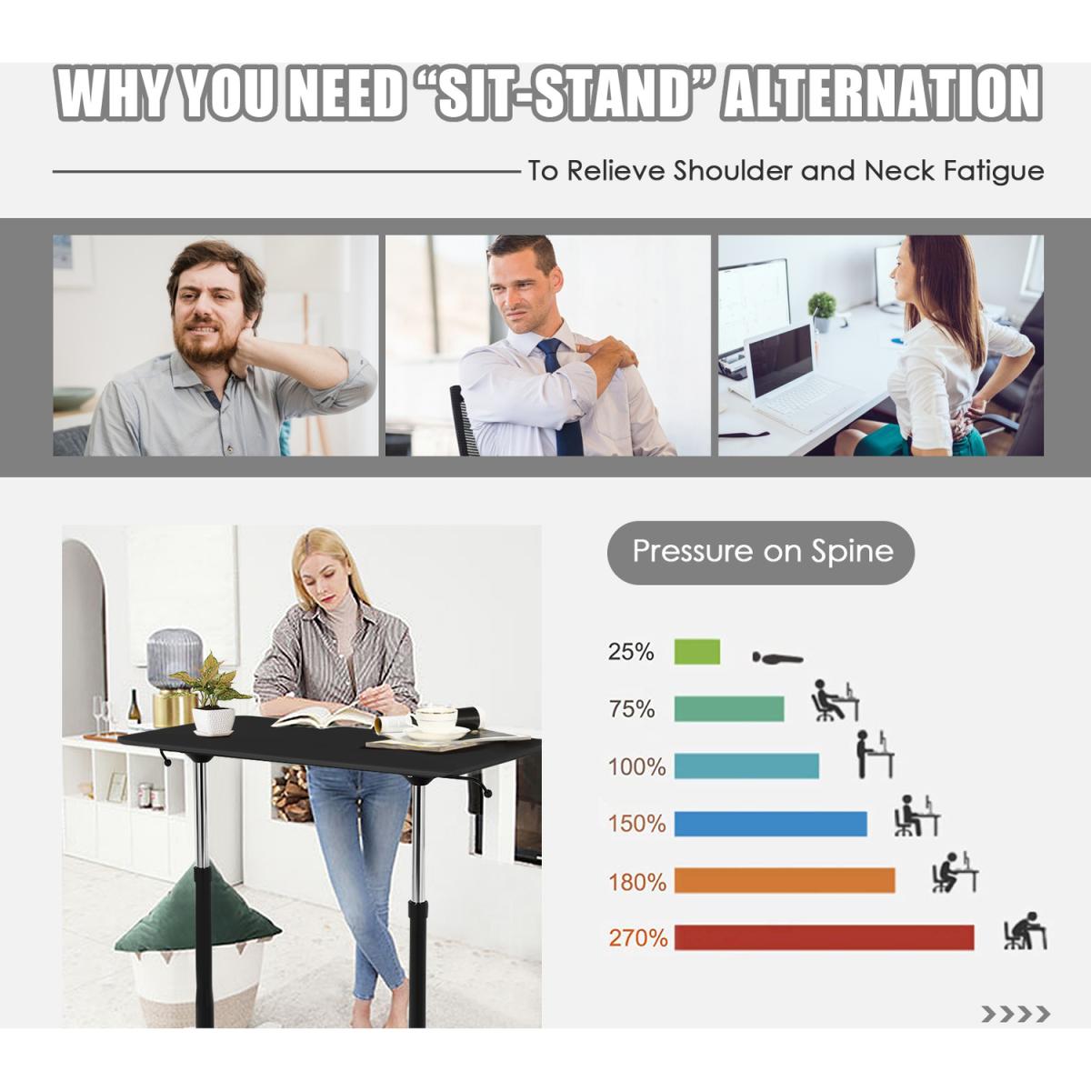 It is high time to choose our standing desk for a brand new working style!Our sit & stand desk can offer you different heights from 70cm to up to 106cm, making it possible for you to flexibly change working postures, which is essential to reduce the pressure on the spine and embrace a healthier way of working. Premium gas rods ensure smooth and quiet rise lifting with a simple pull of the adjusters. In addition, 4 universal wheels add mobility to this desk, making it easier for you to move it to any place according to your needs. Say goodbye to long hours of sitting, and end the day feeling energized and refreshed!