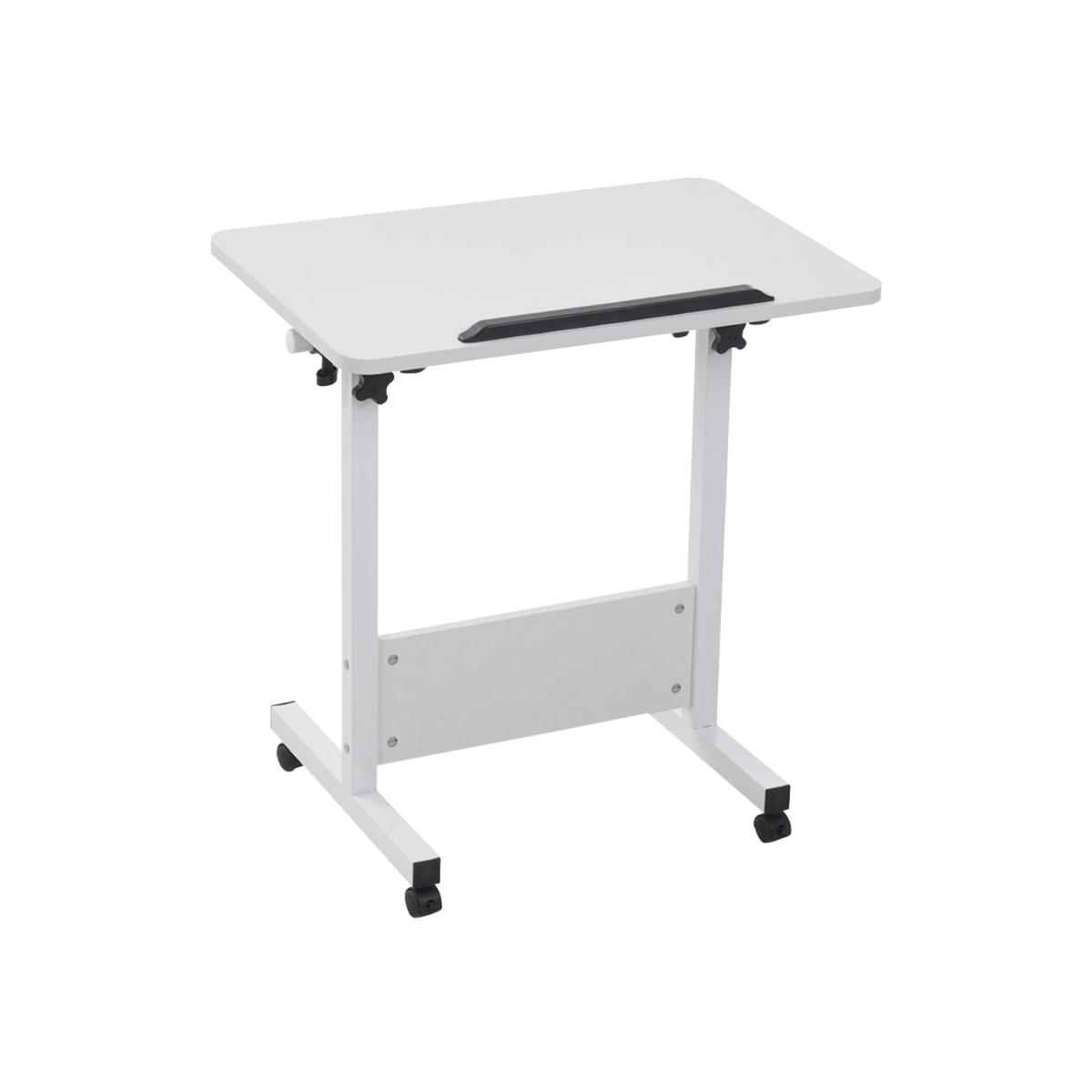 This mobile table brings modern style to any home. The sturdy MDF top and metal frame ensure stability and strength with no wobble. Easily adjust the height with side knobs to suit work or relaxing. The tabletop tilts 90-degree forward or back and folds up when not in use to save space. Lockable castors let you move and park it easily - ideal as a laptop desk, side table or study station.