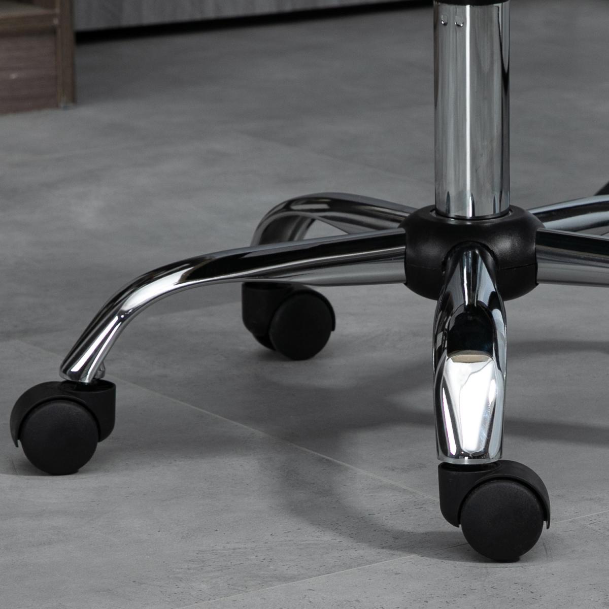 Keep comfortable while working all day with this Vinsetto mesh office chair. A padded sponge seat keeps you comfortable while seated, the mesh back is breathable. The slightly curved back offers support as you lean back. A steel base for weighted balance, with five wheels to move around easily. No arms means this swivel chair fits underneath your desk at any height. A compact design is ideal for small places.