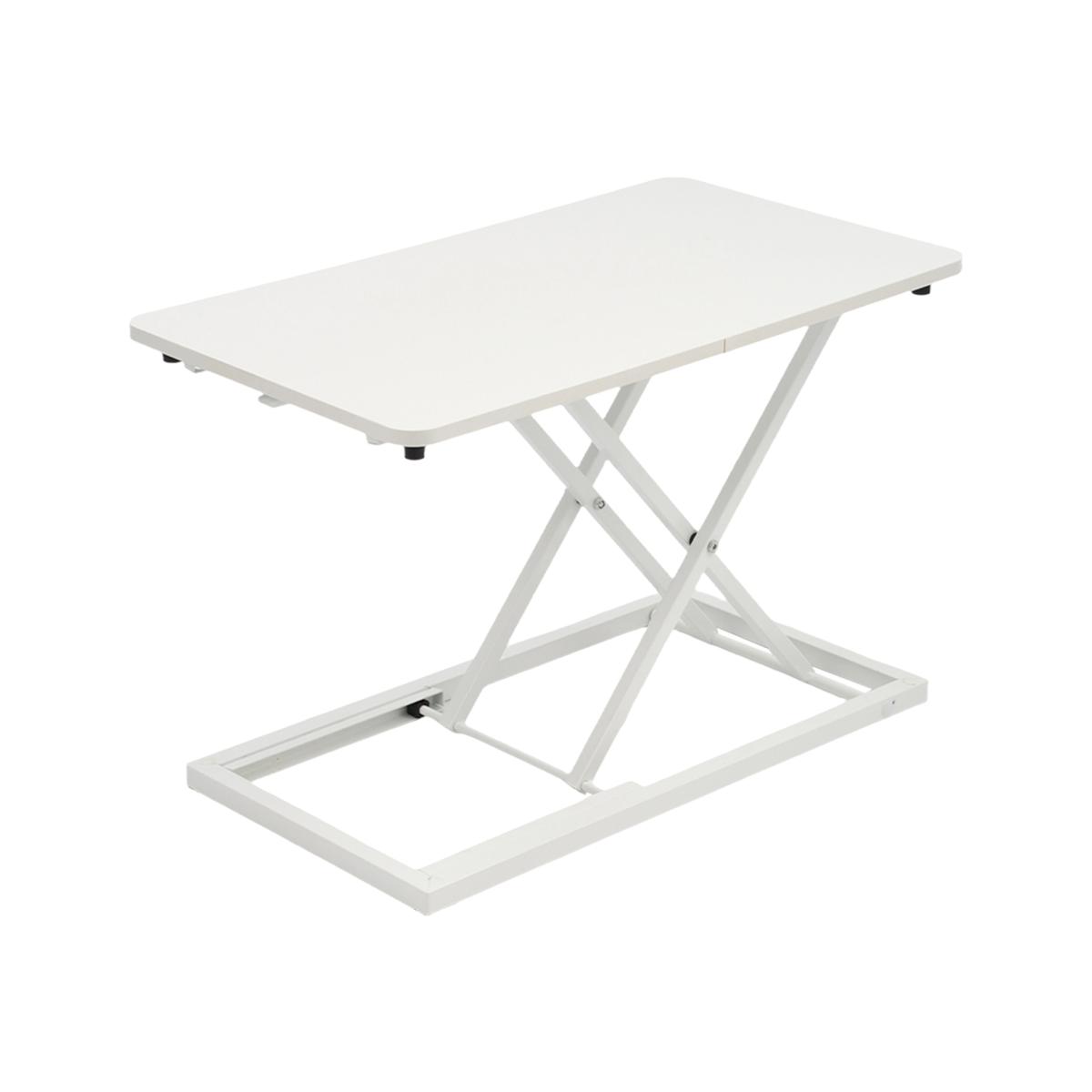 Our standing desk converter combines simplicity with elegance, perfectly merging style and functionality. It offers generous workspace, comfortably fitting a laptop, keyboard, and mouse. The desk allows multi-level height adjustments from 5 to 38 centimetres, accommodating both sitting and standing positions for users of varying heights, helping to reduce back and neck strain. The X-shaped vertical lift structure provides stability and safety during height changes while maximising space efficiency. Its slow-descend mechanism prevents accidental injuries, and the wide base further enhances overall stability, ensuring a secure and reliable workstation.