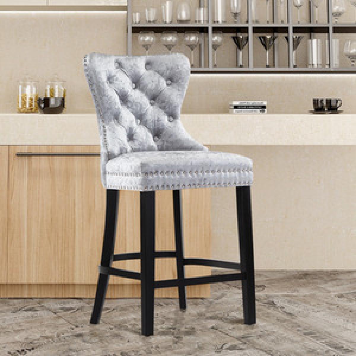 Height bar stool comes in modern contemporary influence featuring elegant wingback design accented with luxe nail head accent. The thickened foam cushion, widened backrest and seating board allow you to sit comfortably. The velvet chair is suitable for any room.