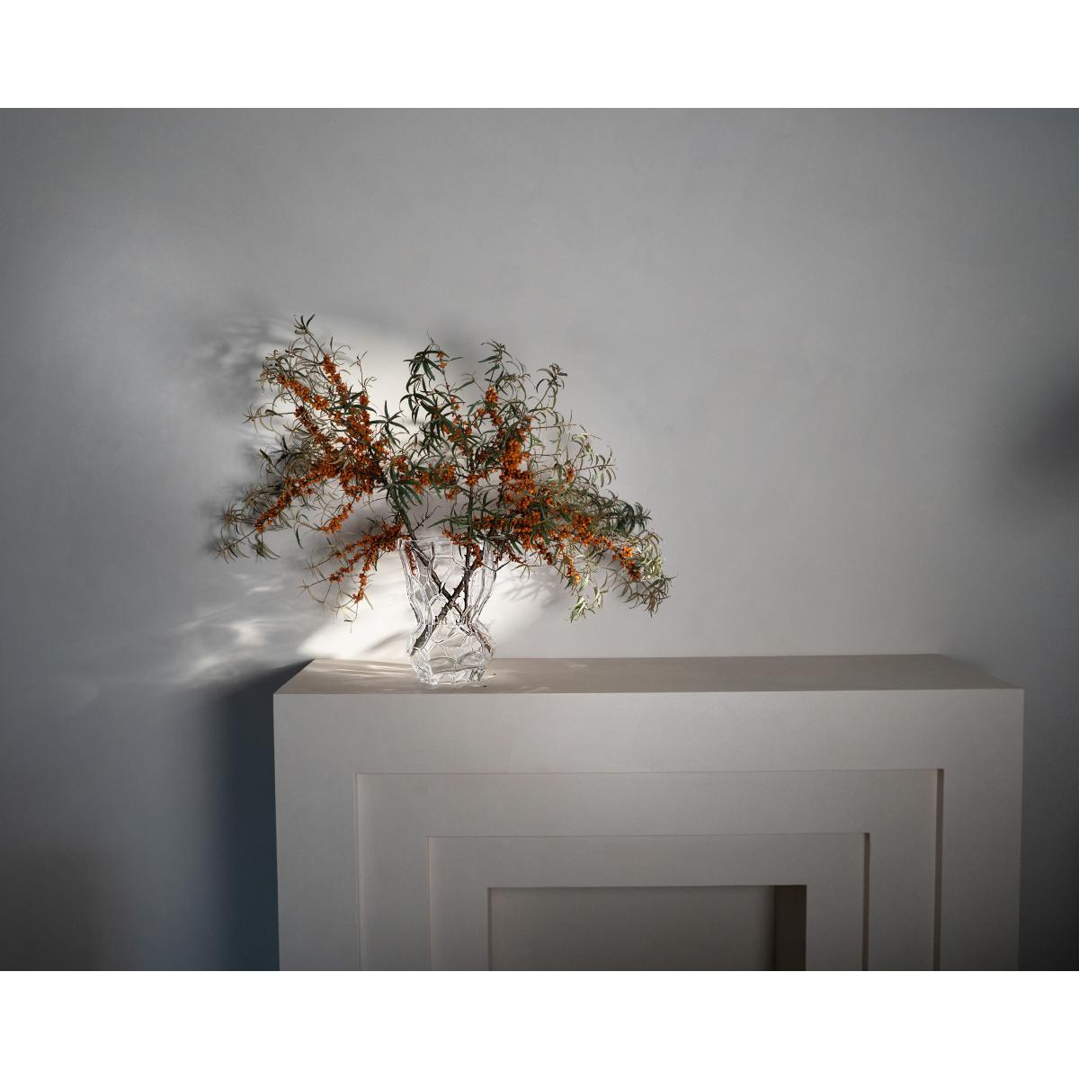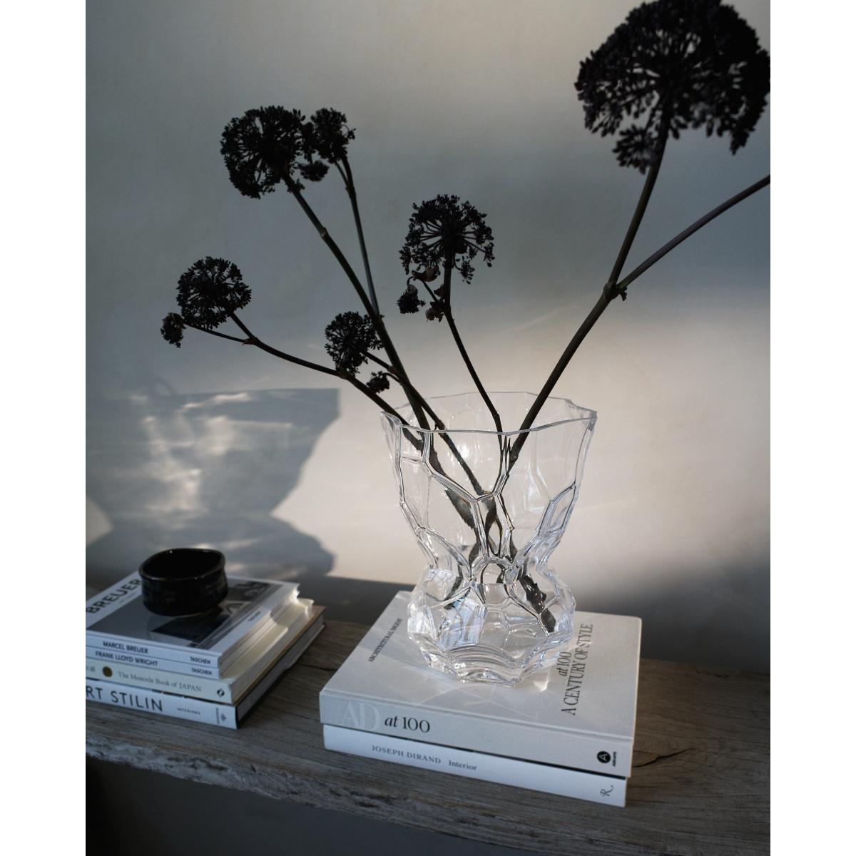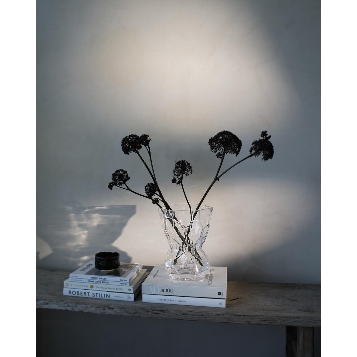 I love the Hein Studio Reflection vase for its modern, sculptural appeal-its reflective surface and irregular shape make it a real statement piece. It works exceptionally well in contemporary interiors, especially those with minimalist or monochrome palettes, where it can add visual interest without overwhelming the space. For practical styling, it's versatile: best suited for showcasing a single statement flower or a few sprigs of greenery, allowing its unique form to shine. Placing it on a coffee table, mantle, or sideboard allows its reflective qualities to catch the light, creating subtle visual texture. Its clear glass construction also lends itself to layered displays with other glassware or decorative objects for a curated, stylish look.