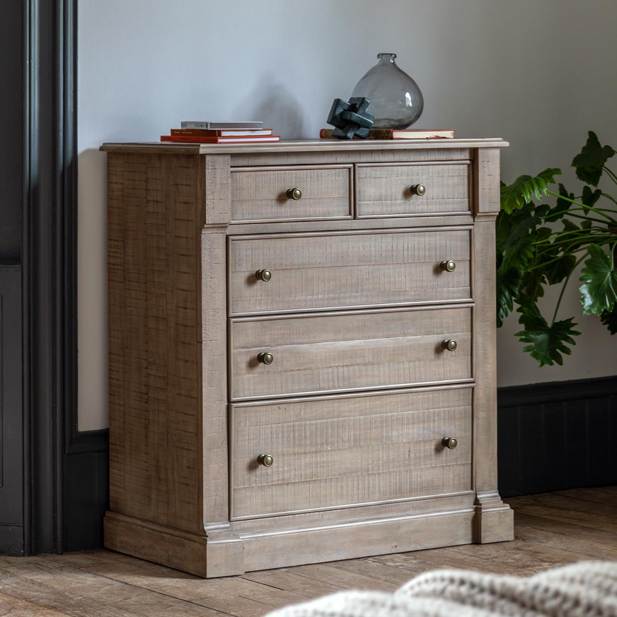 Embrace the legacy of timeless elegance with the Heirloom 5 Drawer Chest. The natural grain patterns of pine wood bring a sense of warmth and nature to your home and the robust construction ensures longevity, making this piece not only a beautiful addition to your space but also cherished for generations to come.