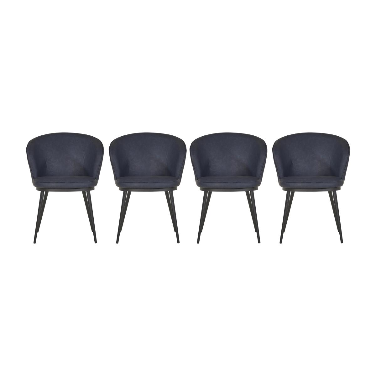 Here’s the perfect dining chair for your industrial-style dining room. With its bold lines, metal trim and black powder-coated metal legs, the Hela chair is entirely at home in an urban dining space. And the curvaceous back-hugging design, luxurious cushioning and soft faux leather upholstery ensure that it's every bit as comfortable as it is cool. The Hela dining chair is offered in a choice of sophisticated contemporary colours and in great-value sets. It’s also available as a tall stool for your kitchen counter or bar table. Perfect around an industrial-style dining table, this set of four ultra-cool and ultra-comfortable faux leather dining chairs brings a modern urban vibe to any space. Why you'll love it. Modern comfort meets urban cool in this set of 4 curved dining chairs. Industrial style. Seat bases feature bold metal trims. Black powder-coated metal legs. Faux leather upholstery has a lightly mottled finish. In a choice of sophisticated colours. Upholstery is neatly finished with piping. This set of 4 dining chairs is part of the Hela range. What you need to know. Foam seat cushioning. Metal frame and legs. The Hela range also includes a single dining chair and a counter stool.