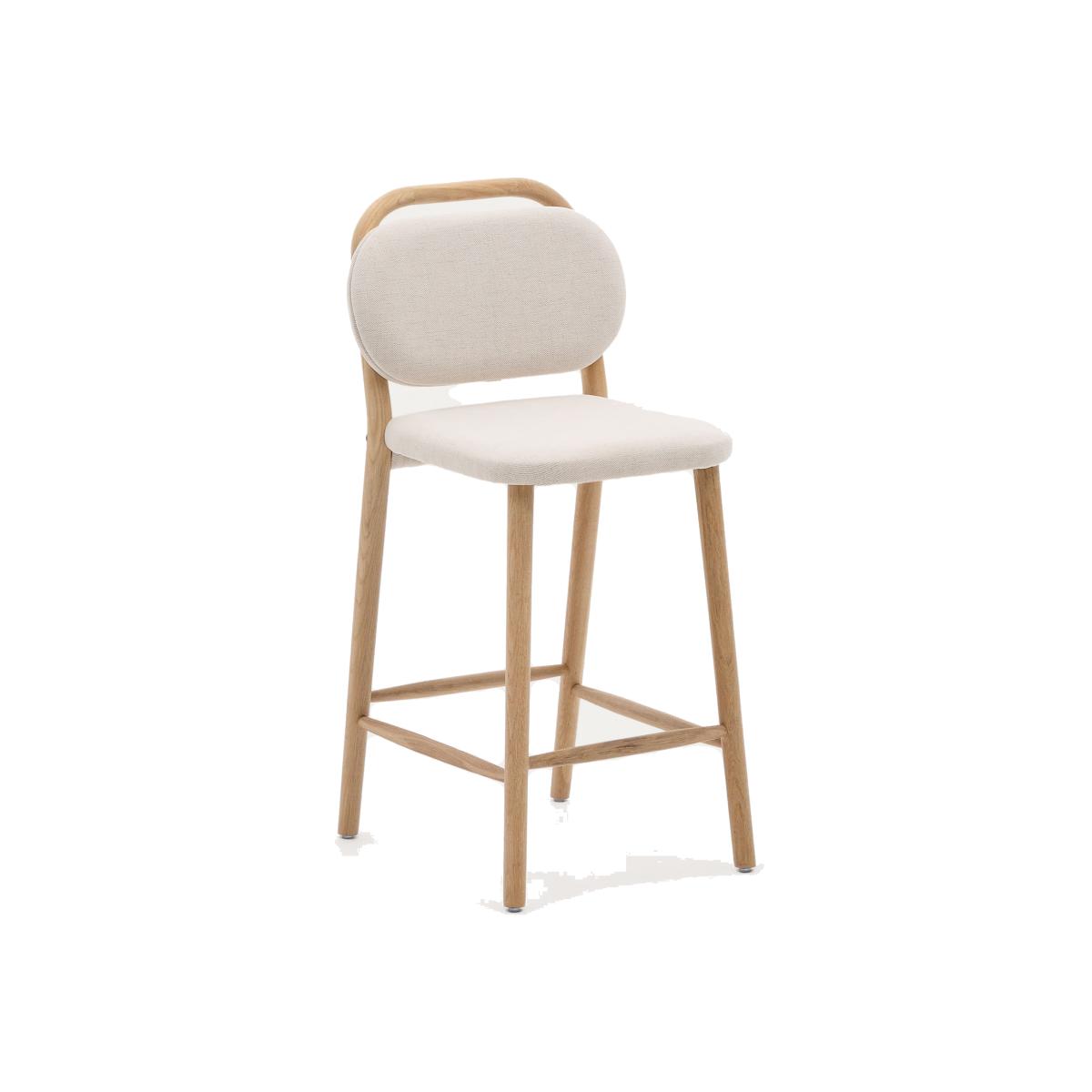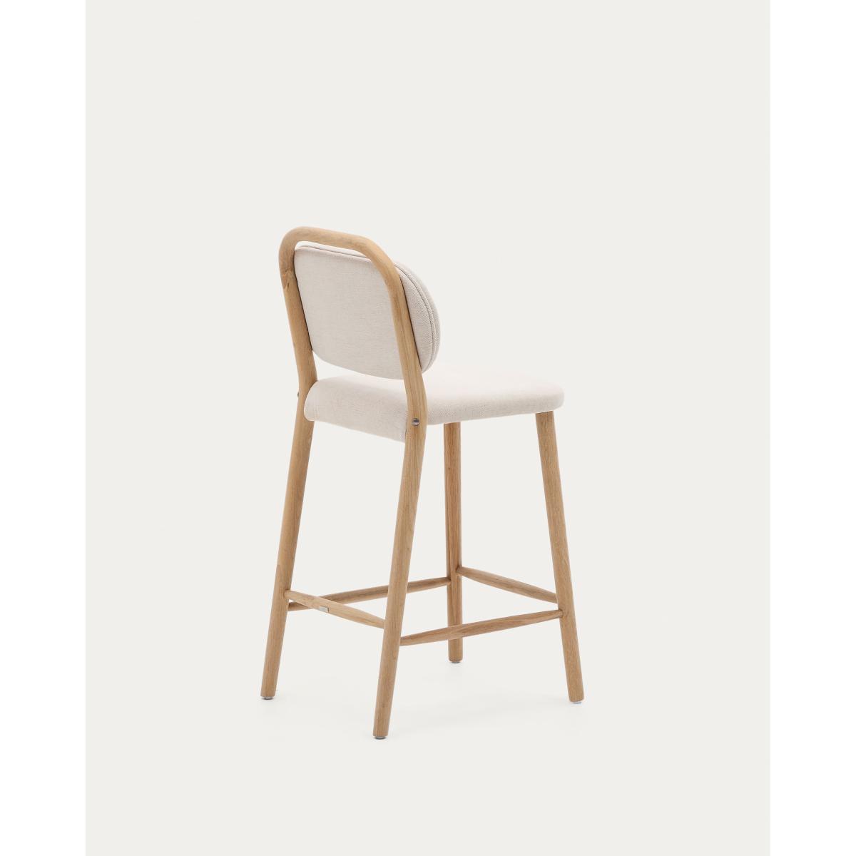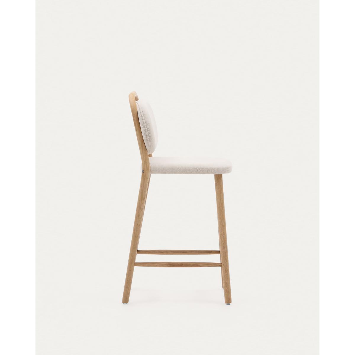 Helda stool in beige chenille and solid oak wood FSC Mix Credit 65 cm