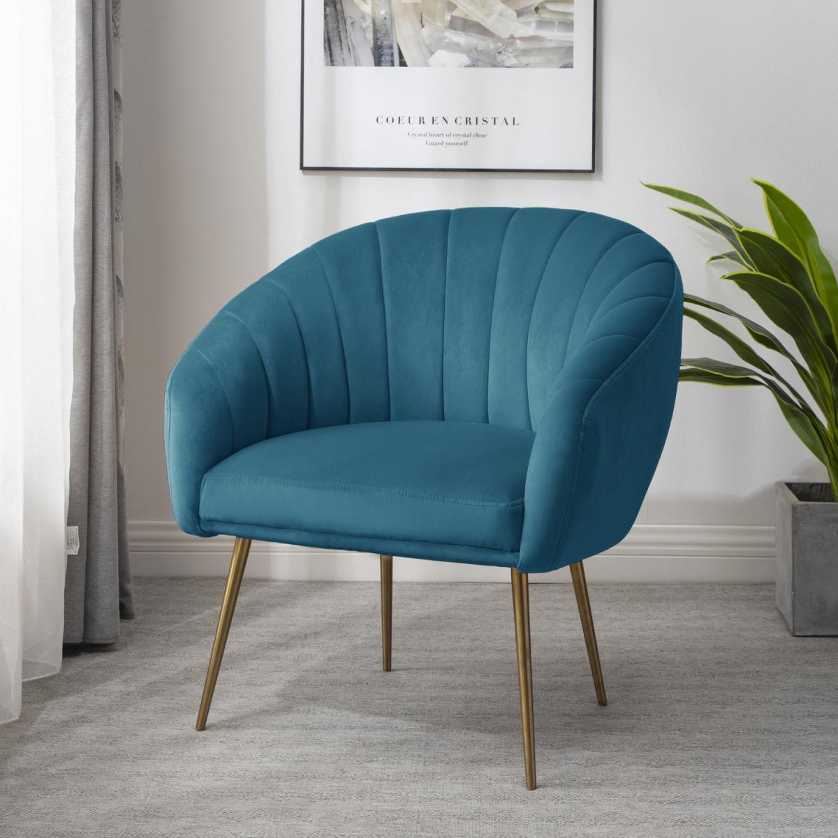 This teal accent chair is a versatile addition that works particularly well in both modern and retro-inspired interiors, thanks to its vibrant colour and sleek design. I love how the rounded shape and vertical tufting add a touch of elegance without feeling too formal. It’s an excellent statement piece that can inject colour into a neutral scheme or complement a colour palette with other teal or complementary tones. For styling tips, try pairing it with metallic accents or warm wooden furniture to create a balanced look, and consider placing it in a reading nook or alongside a side table for practical use. Its compact size also makes it a great choice for small spaces or to add a welcoming pop of colour in larger rooms.
