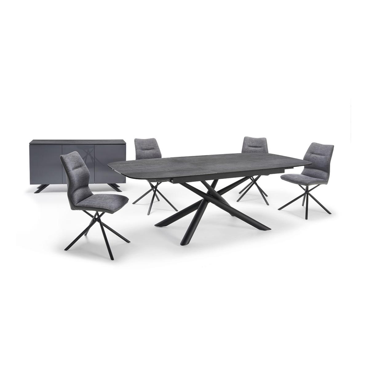 The Helena Extendable Dining Table - A Stylish Solution for Modern Dining The Helena dining table blends sophisticated design with everyday functionality — perfect for family meals, dinner parties, and everything in between. Designed with versatility in mind, it features a discreet, integrated extension leaf hidden beneath the tabletop. A smooth push-and-pull mechanism makes it easy to extend the table, offering extra space for two additional guests in seconds. Crafted with a durable ceramic tabletop in a contemporary stone-effect finish, the Helena comfortably seats 6–8 people. The sleek black tubular metal legs add a modern, refined touch, making it a standout piece in any dining area. Assembly required. Pair it with our matching Helena chairs for a cohesive, stylish dining setup. Dimensions: Width: 179–238 cm Depth: 95 cm Height: 76 cm All screens vary in colour reproduction and whilst every effort has been made to display the colour as accurately as possible it is for guidance only.