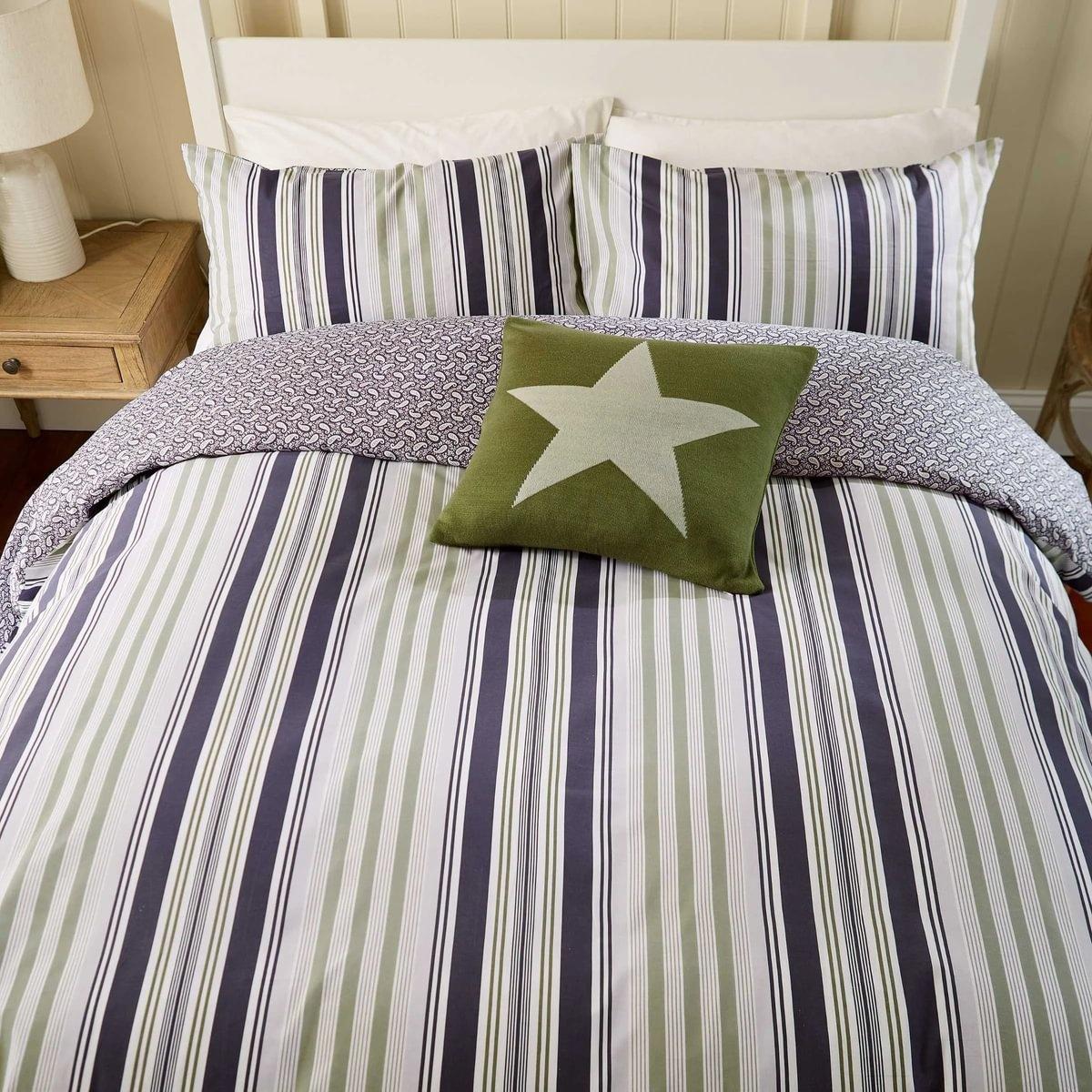 Helena Springfield Beach House Stripe Duvet Set - Green and Slate - Single In Green/Slate