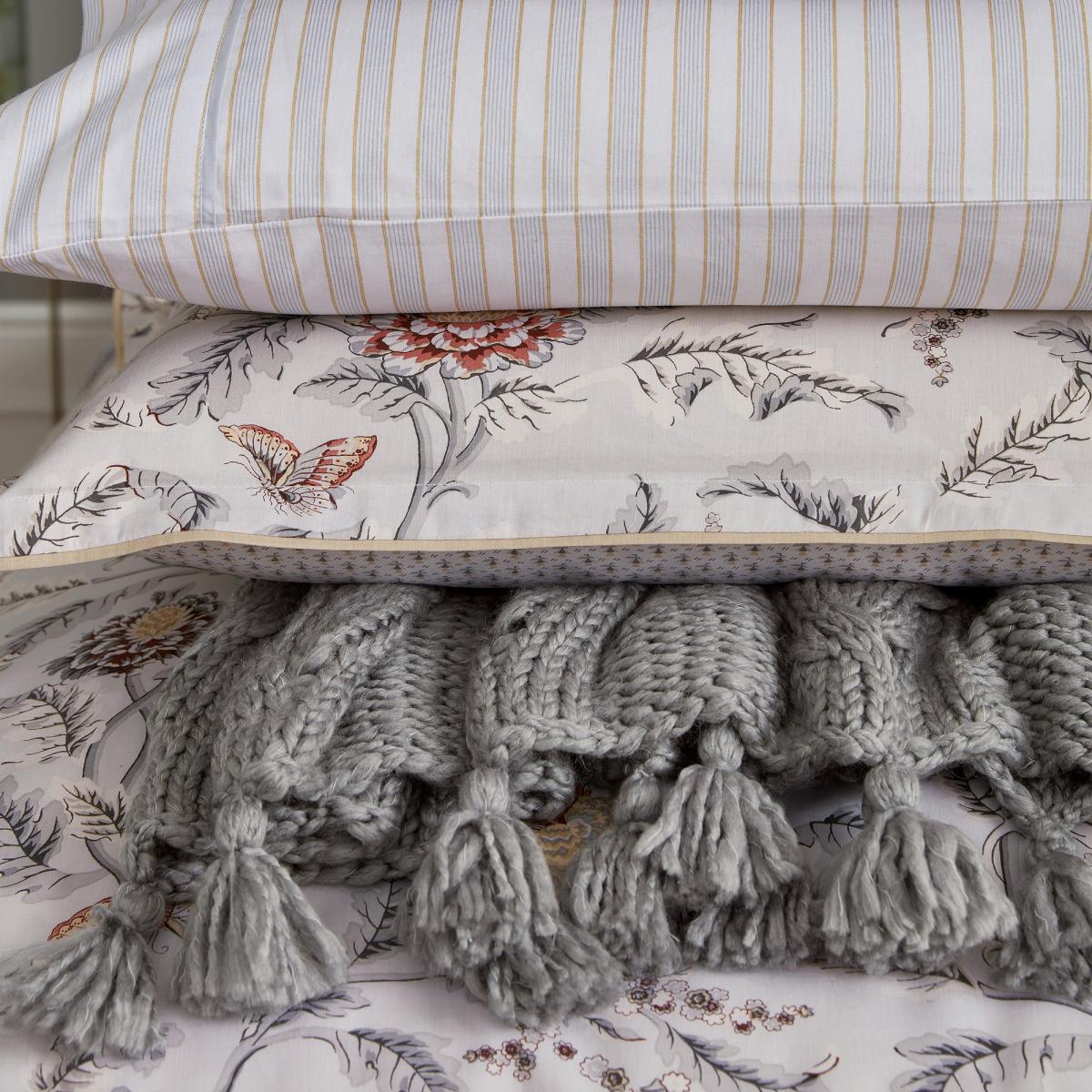 The Helena Springfield Emeline & Kalina throw has a chunky cable knit design and has been complete with grey tassels at either end. Coordinating bedding is available to help complete the look.