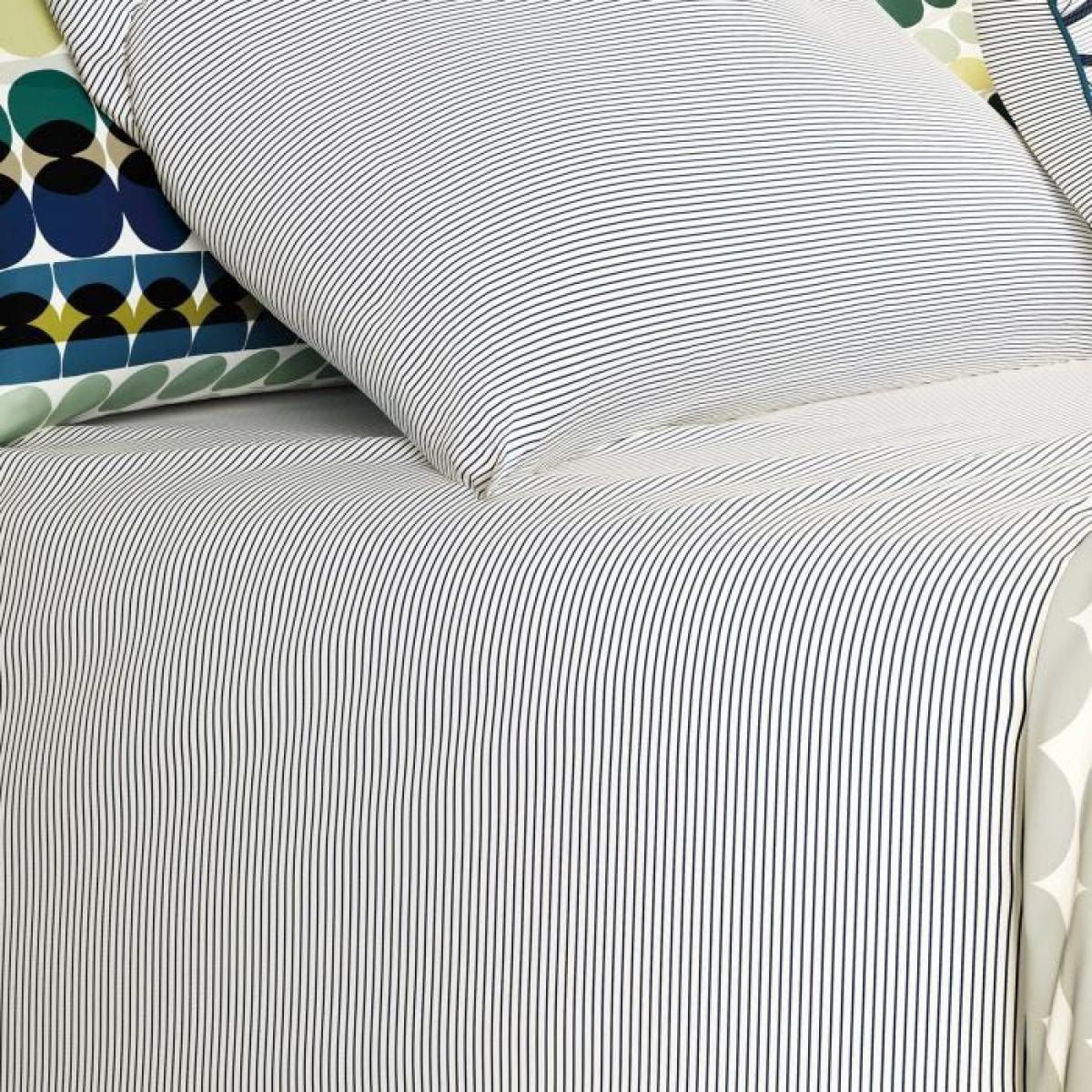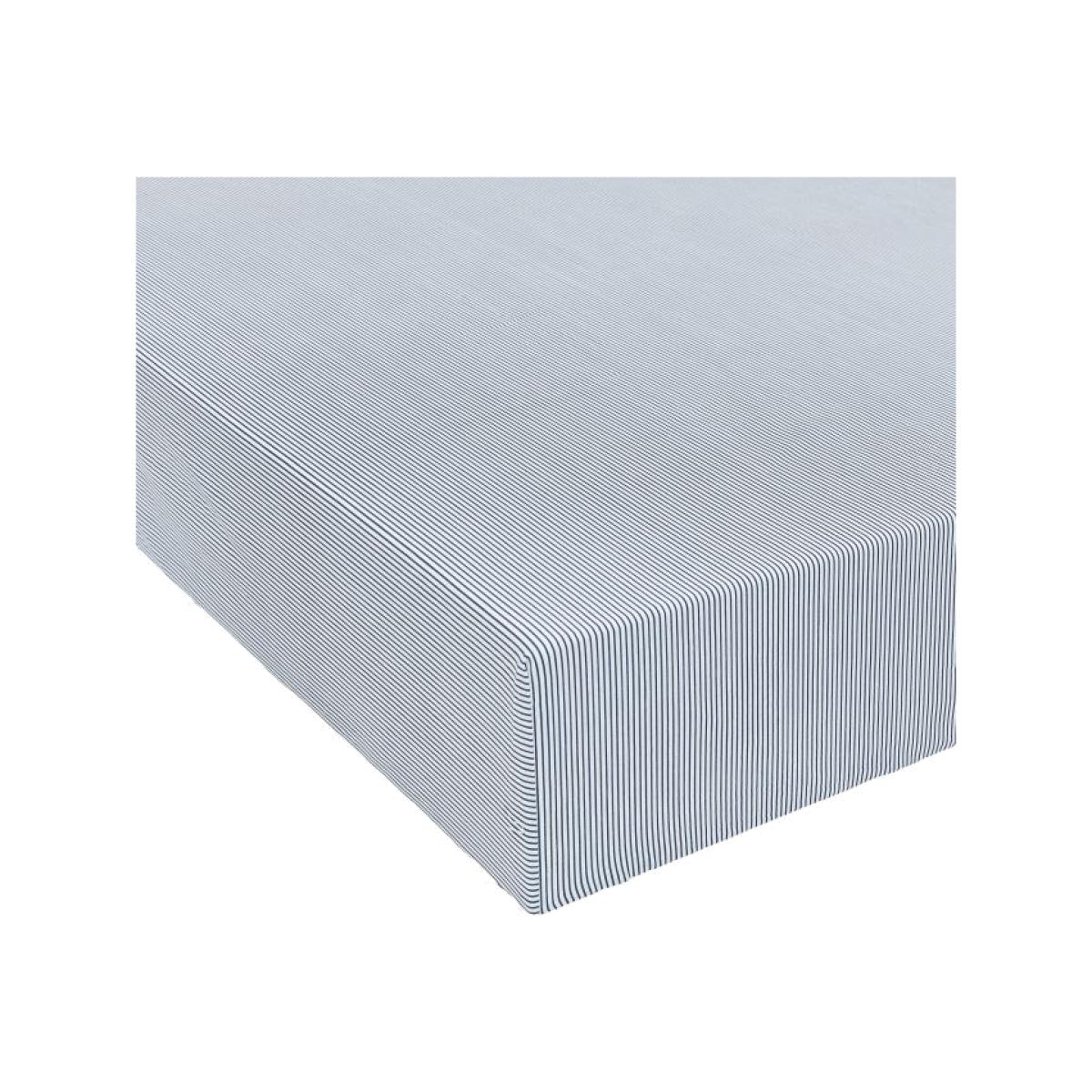 These sheets have a stripe pattern print in inky navy on a white background, which co-ordintaes perfectly with the Laila or Clara belinen sets. Box Depth of Fitted Sheet is: 28cm Polyester 52%/Cotton 48% All screens vary in colour reproduction and whilst every effort has been made to display the colour as accurately as possible it is for guidance only.