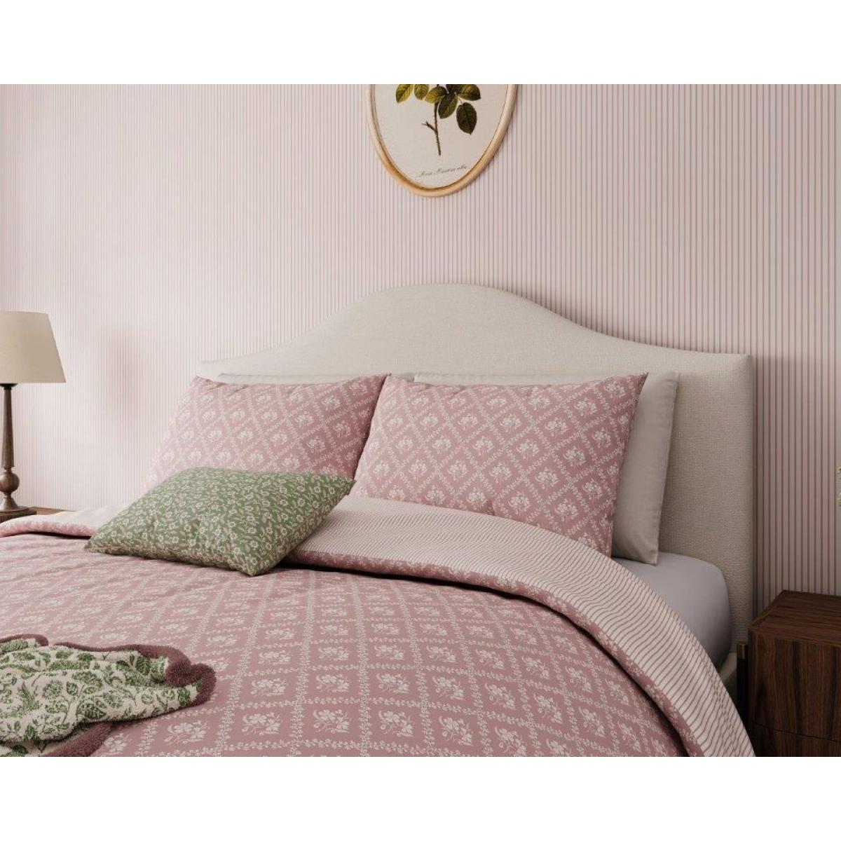 The Meadow Posy Duvet Set by Helena Springfield brings soft floral elegance to your bedroom. Scattered with delicate posies across a gentle pink backdrop, this design evokes a fresh and uplifting country charm. The reverse and matching pillowcases feature a simple co-ordinating print, offering a versatile look for everyday style. Crafted from 100% cotton, this bedding set is naturally soft, breathable, and comfortable. Complete the look with the coordinating accessories for a charming finish. Features: Scattered floral posy design in a soft pink colourway Co-ordinating reverse with matching pillowcases Fresh, country-inspired styling with a delicate feminine touch 100% cotton for softness and breathability Single Duvet Includes Single Pillowcase Double, King and Superking Size Duvet Includes Pair of Pillowcases Care Instructions: Machine washable Wash dark and light colours separately Tumble dry on a low heat setting Iron on reverse if required The Helena Springfield Meadow Posy Duvet Set combines timeless floral design with natural comfort, creating a serene and stylish addition to your bedroom. Please note All screens vary in colour reproduction and whilst every effort has been made to display the colour as accurately as possible it is for guidance only.