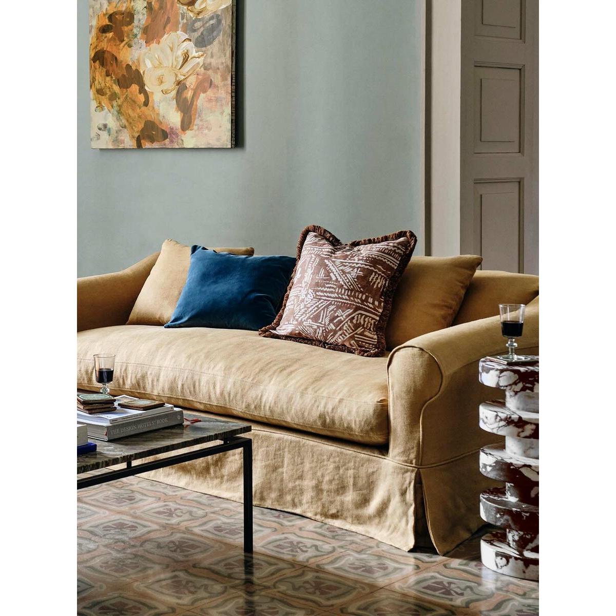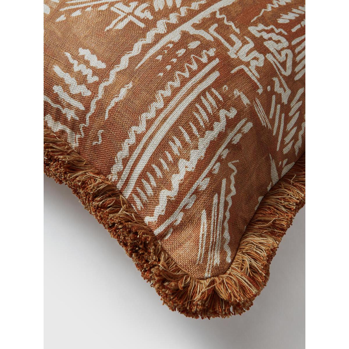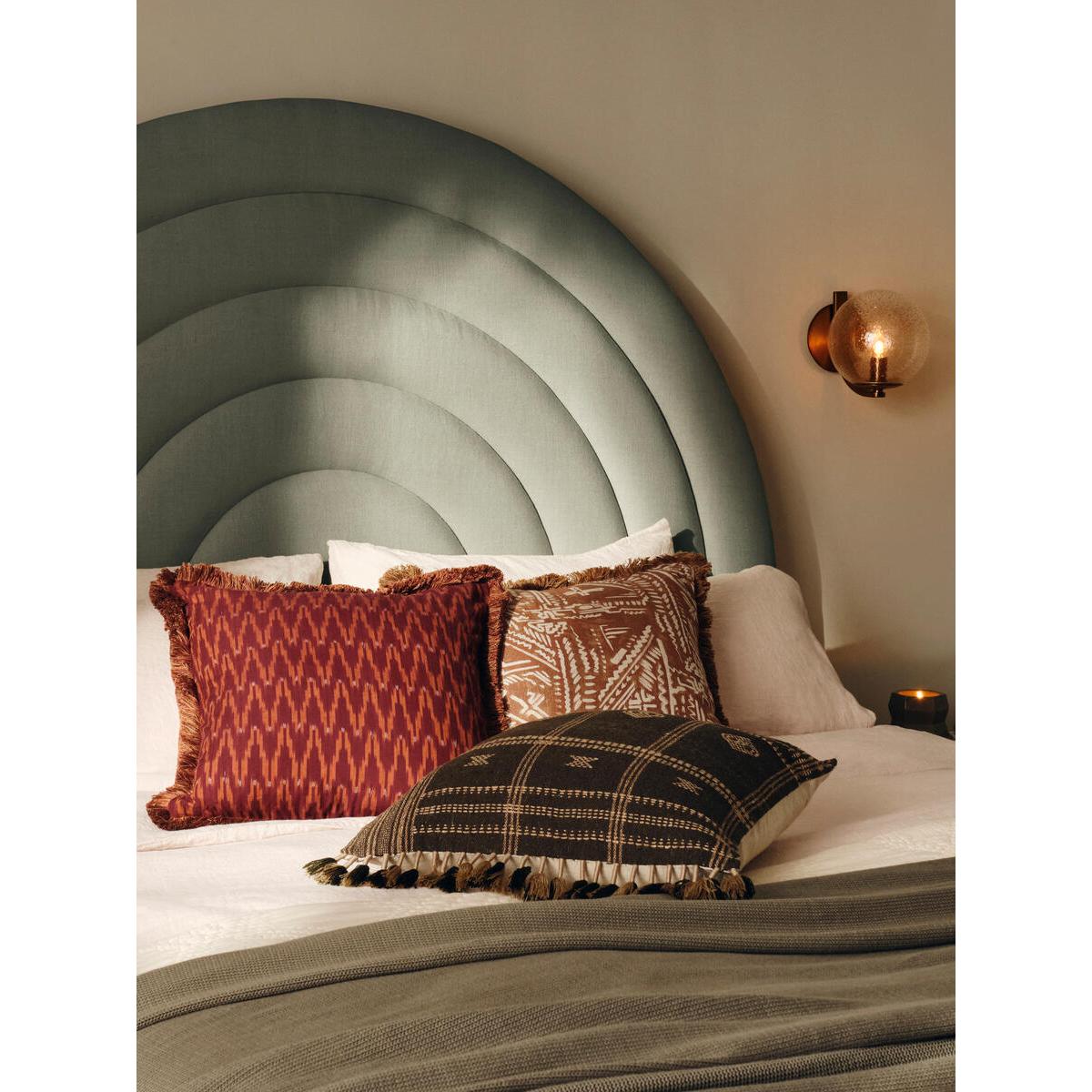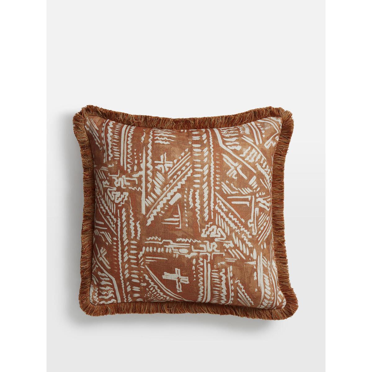 Hand-painted by our in-house team, the Helford cushion is wovenand digitally printed in the UK on a 100% linen base with tonaleyelash fringing. The design draws inspiration from the decorativeaccents and architecture seen throughout Soho House Mumbai. 100% viscose-linen cushion. Hand-painted and digitally printed. Made in the UK. Tonal eyelash fringing. Inspired by Soho House Mumbai.