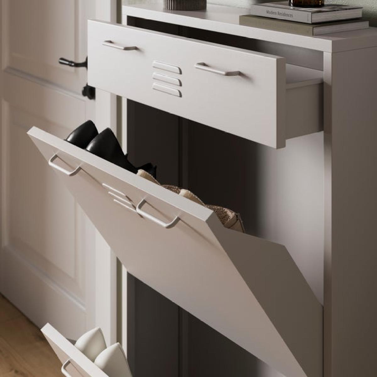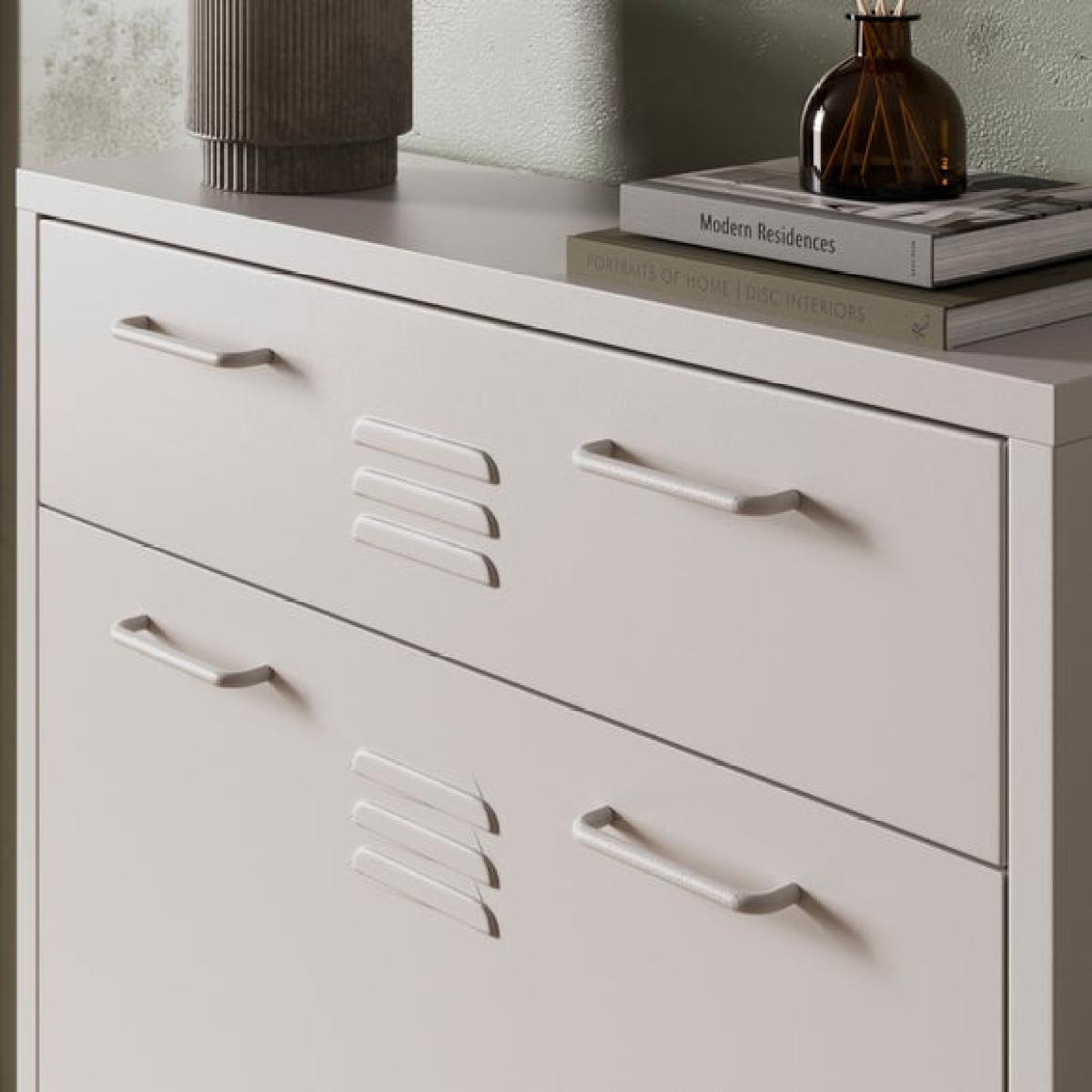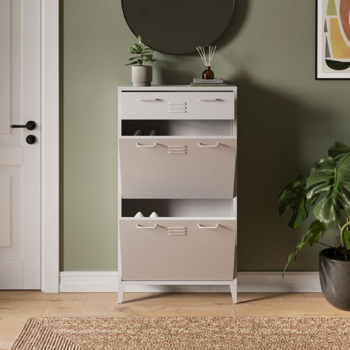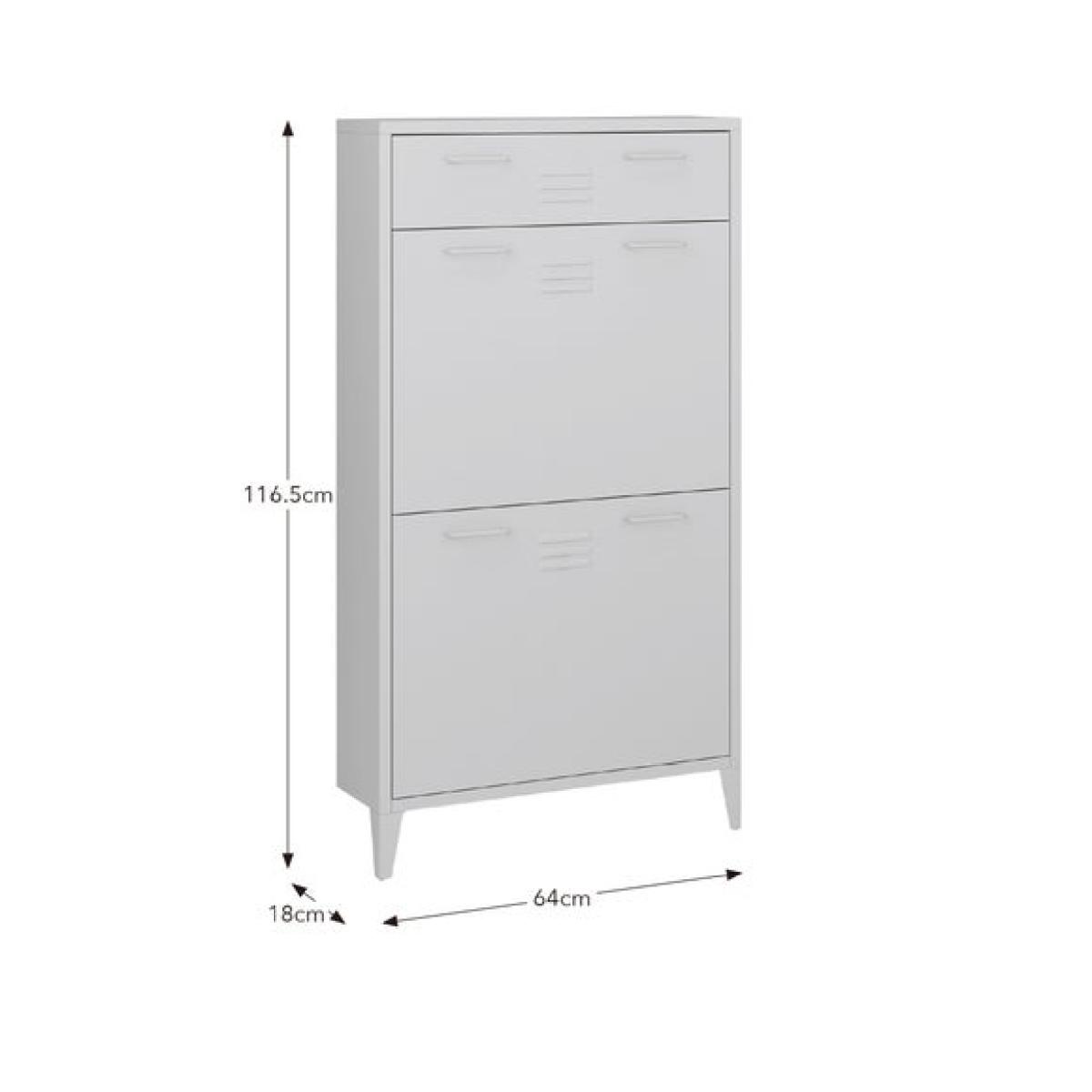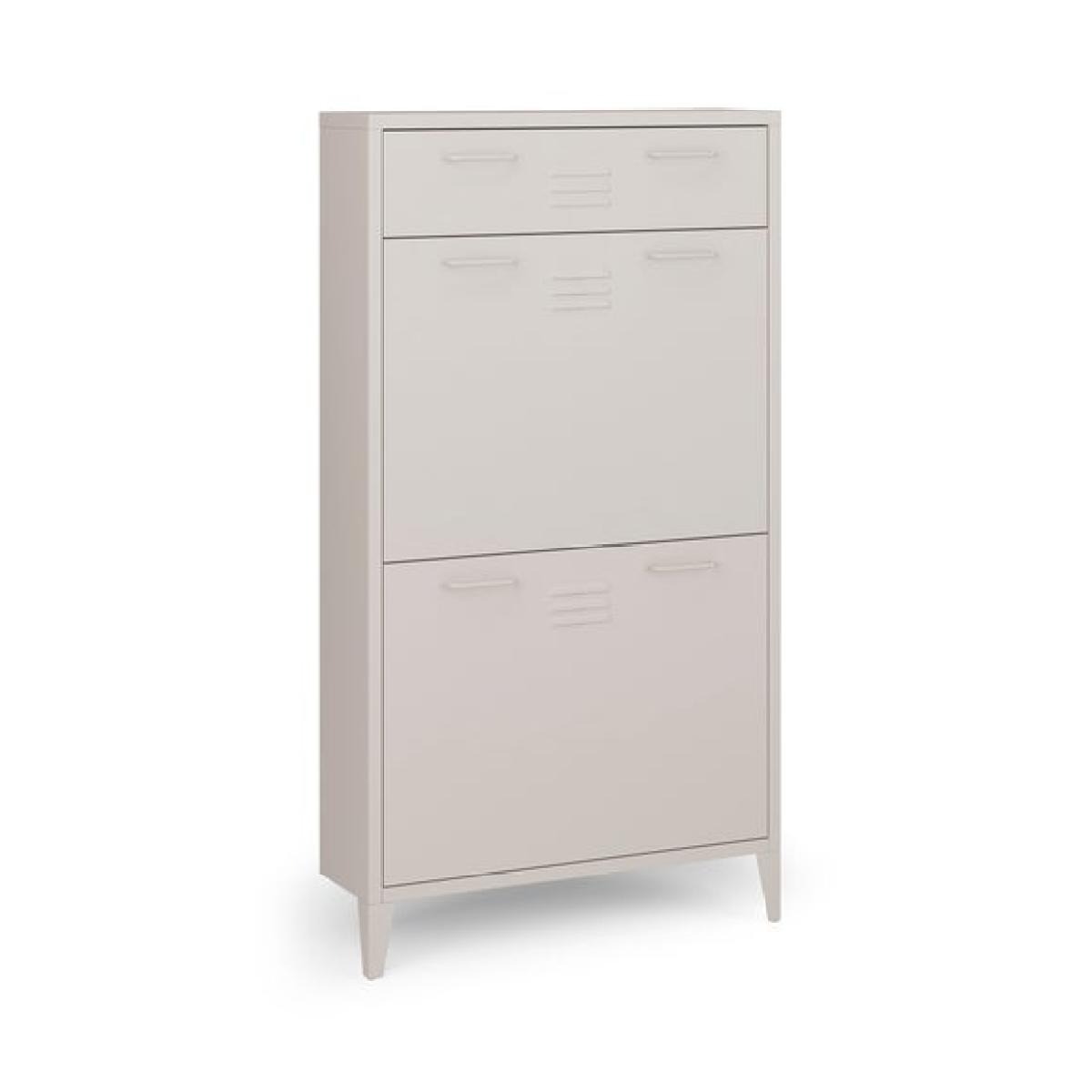 * Industrial locker style * Metal frame * Adjustable legs The Helga shoe drop is a smart and stylish way to keep your hallway or entrance tidy. Inspired by classic locker-style design, it brings a touch of industrial charm to your space while offering practical storage for everyday footwear. The drop-down compartments are ideal for neatly tucking away shoes, keeping them out of sight but easily accessible. Adjustable legs ensure a stable fit on uneven floors, and the legs are supplied separately for easy assembly.