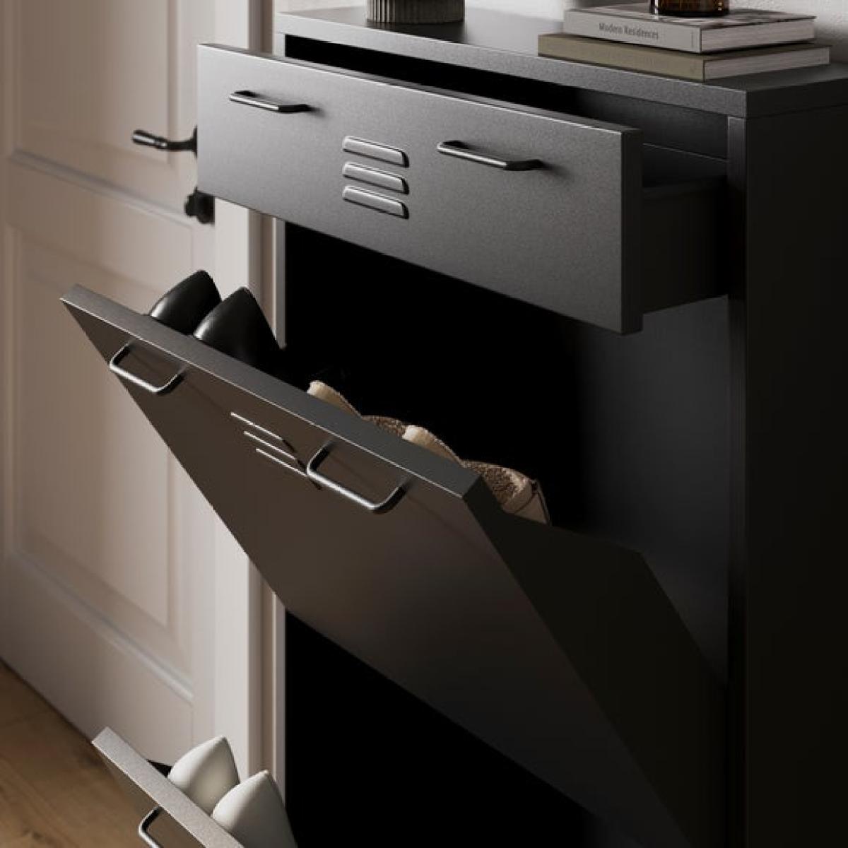 I love this shoe drop for its sleek, minimalist design, making it a versatile piece that works well in modern or contemporary interiors. Its matte black finish adds a touch of sophistication and can easily complement other neutral tones or bold colours in your space. Practical styling tips include placing it near the entrance for quick shoe storage or using it as a statement piece in a walk-in wardrobe. It works particularly well in Hallway or Utility Room settings, offering both function and style while helping to keep your footwear organised and out of sight.
