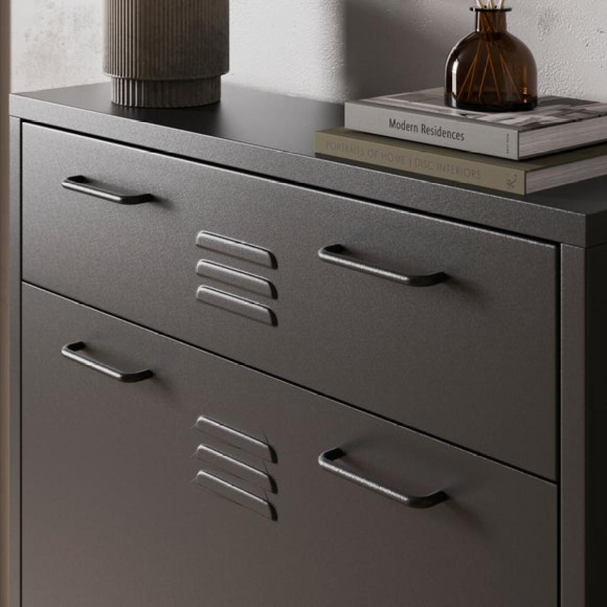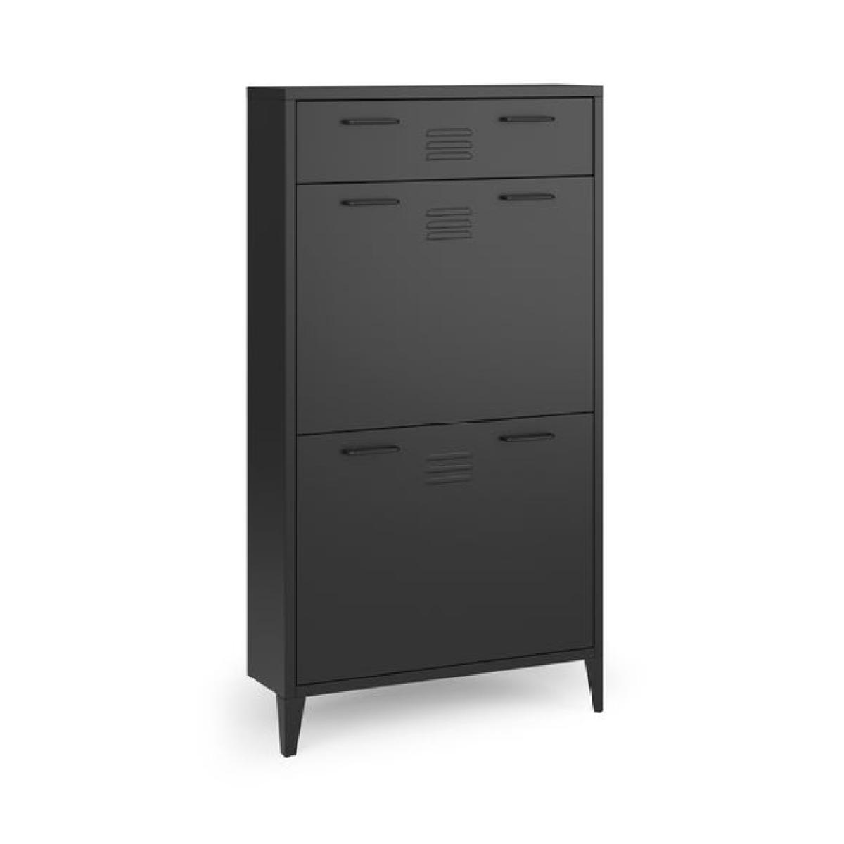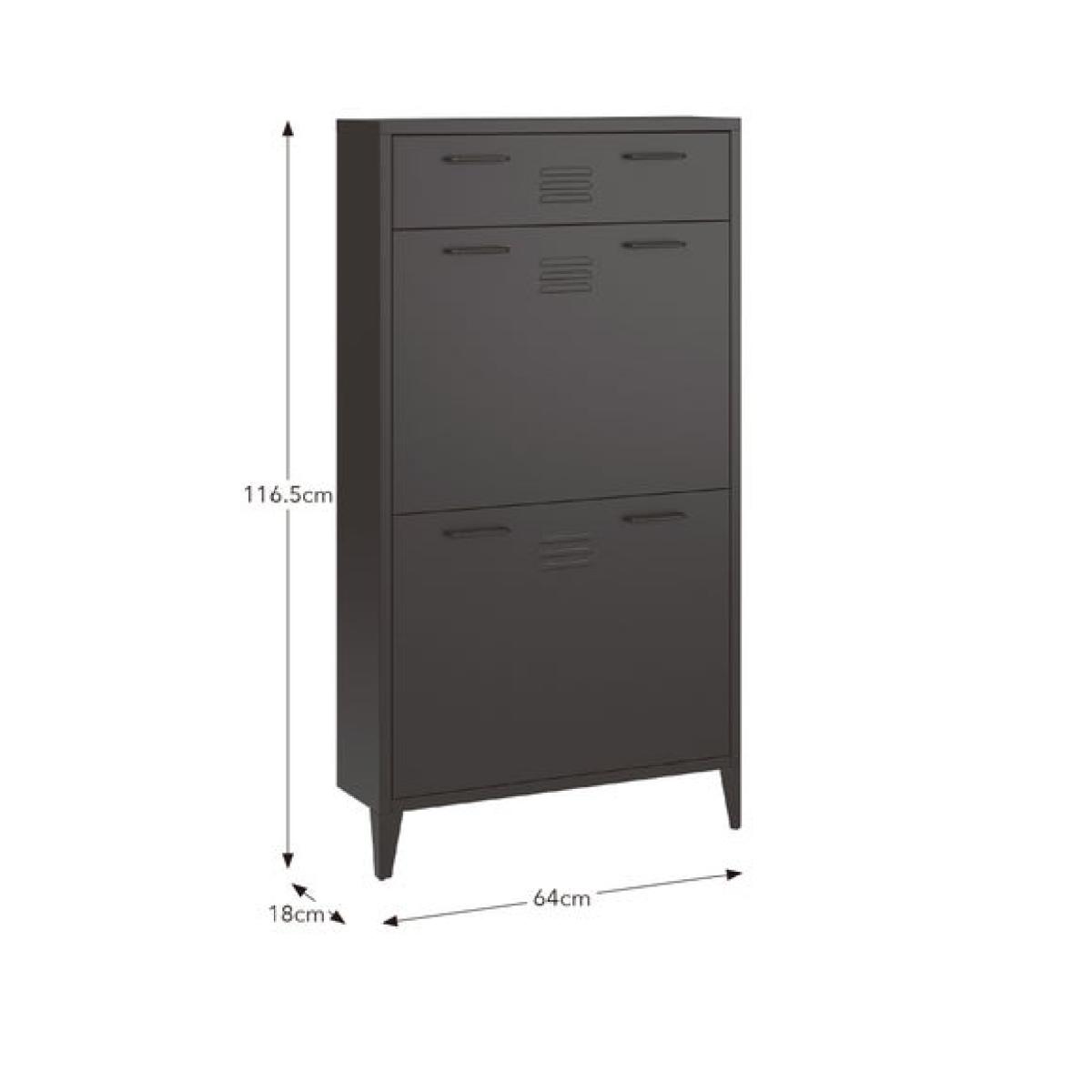 * Industrial locker style * Metal frame * Adjustable legs The Helga shoe drop is a smart and stylish way to keep your hallway or entrance tidy. Inspired by classic locker-style design, it brings a touch of industrial charm to your space while offering practical storage for everyday footwear. The drop-down compartments are ideal for neatly tucking away shoes, keeping them out of sight but easily accessible. Adjustable legs ensure a stable fit on uneven floors, and the legs are supplied separately for easy assembly.