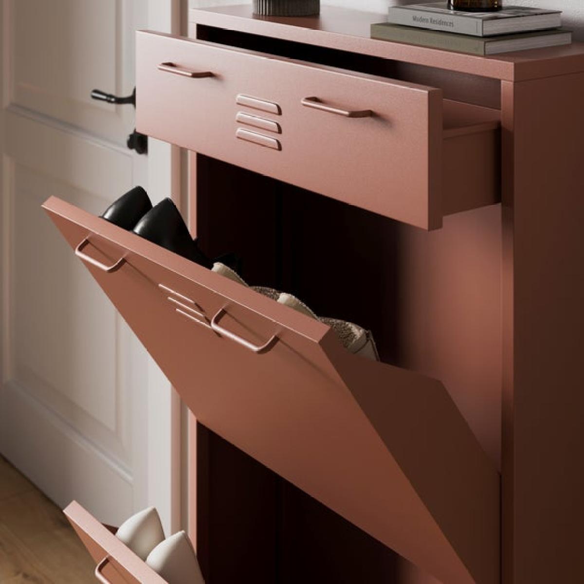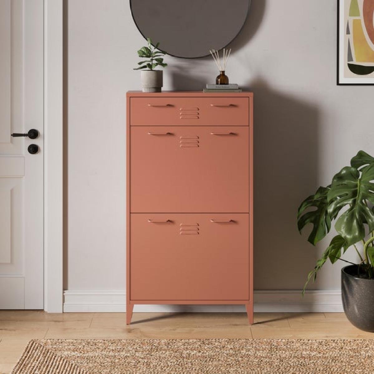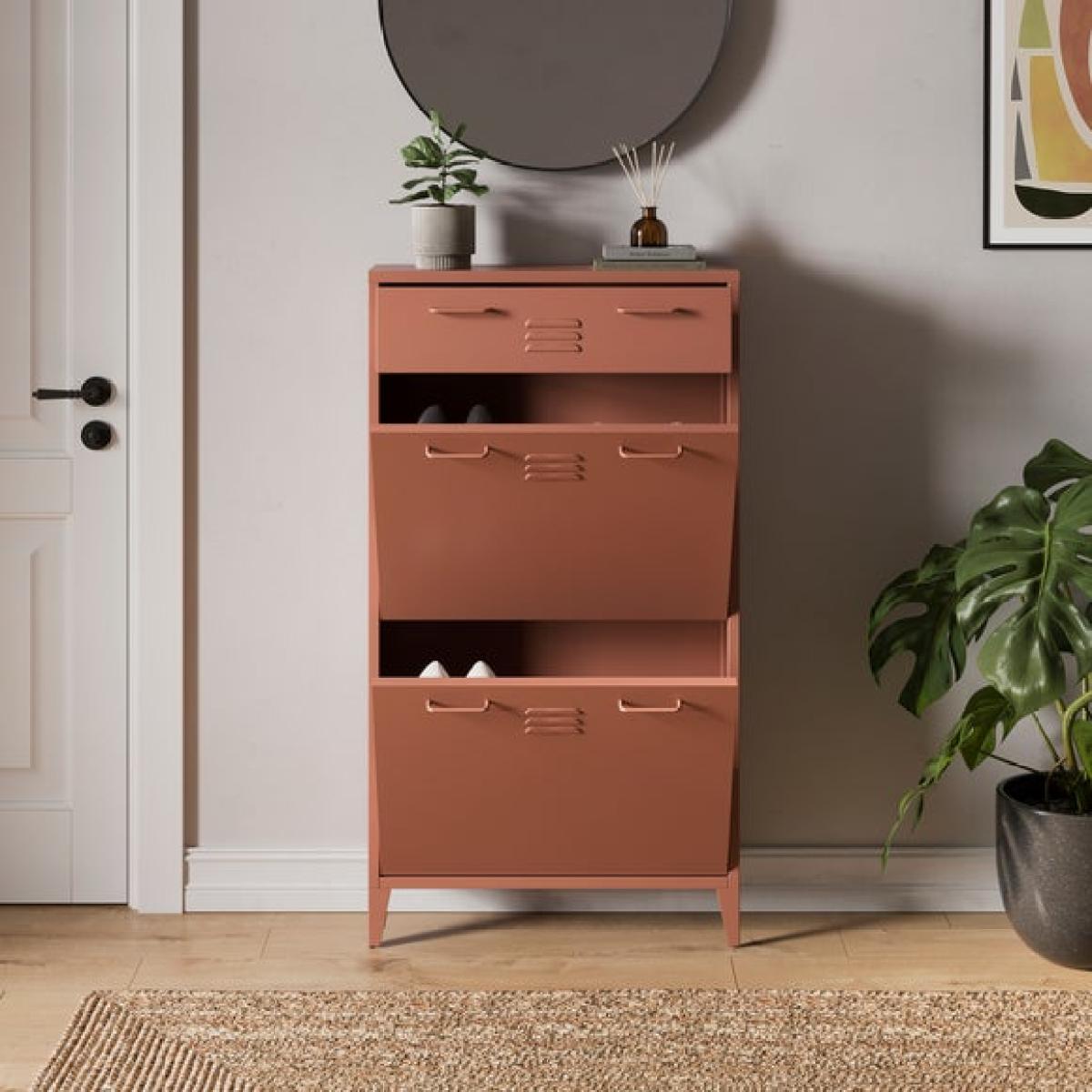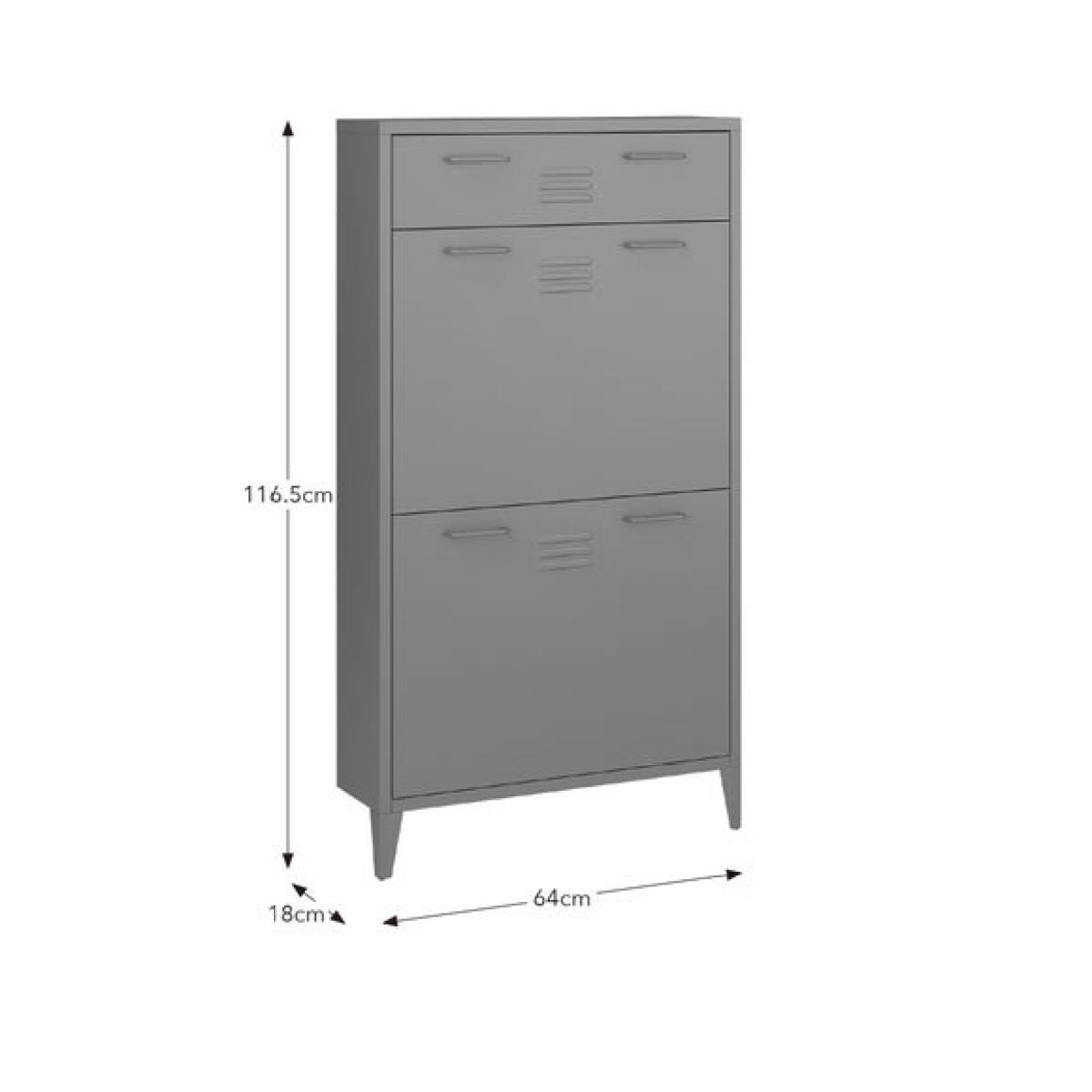 * Industrial locker style * Metal frame * Adjustable legs The Helga shoe drop is a smart and stylish way to keep your hallway or entrance tidy. Inspired by classic locker-style design, it brings a touch of industrial charm to your space while offering practical storage for everyday footwear. The drop-down compartments are ideal for neatly tucking away shoes, keeping them out of sight but easily accessible. Adjustable legs ensure a stable fit on uneven floors, and the legs are supplied separately for easy assembly.