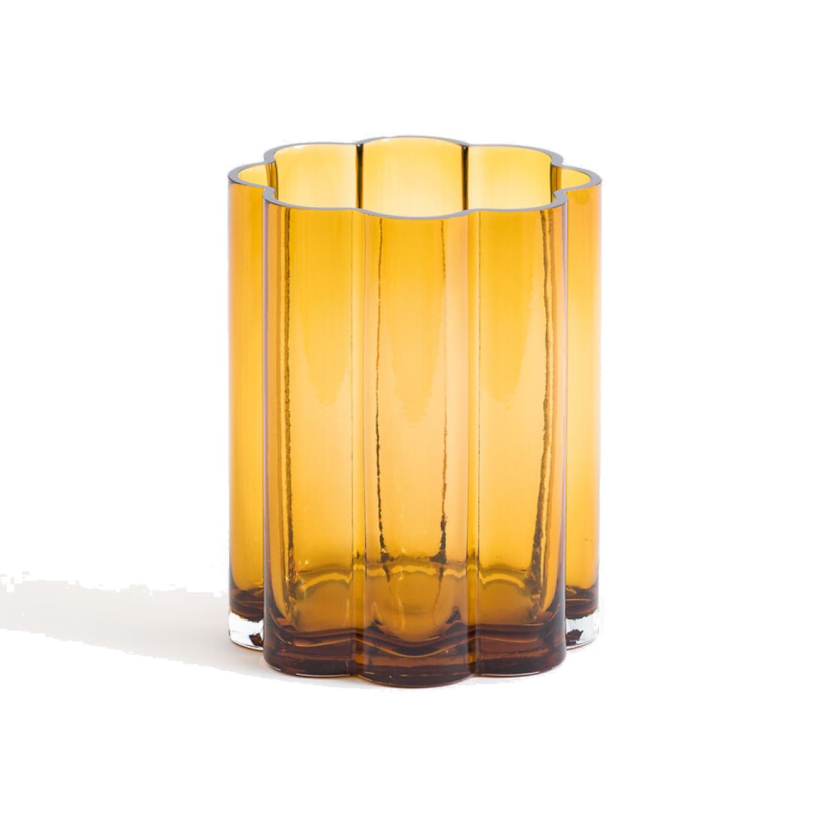With its ripple effect and amber coloured glass, the Helia vase is the perfect pick to display flowers and twigs. Its rounded lines and seventies look add a vintage touch to your home. Fabulously decorative. Product Details • In amber glass • Wavy edging • Shipped in packaging specifically designed to avoid any risk of breakage. Dimensions • Diameter: 16cm • Height: 20cm