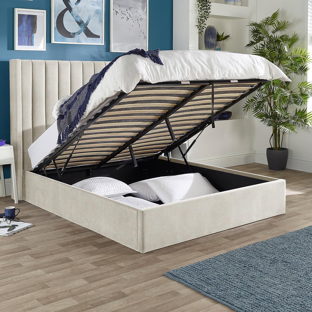 A luxurious, quality ottoman bed frame with a large, padded headboard complete with winged side panels is sure to form a stunning focal point to any bedroom. Upholstered in a soft touch brushed velvet, the Helix is as thoughtful inside as out, featuring high quality sprung slats enhancing mattress comfort and lifespan. The large storage area can be easily accessed with the help of the included gas lift pistons, once the bed is open the mechanism will hold in place allowing hands free access to the large storage area. The storage area features a fabric dust protector so stored items are not in direct contact with the floor. Product Details • Tall winged headboard with vertical stitched quilted design • Premium plush velvet fabric • Fabric base storage compartment to protect belongings • Sturdy and robust mechanism - The end lift mechanism handles mattresses up to 60kg in weight, accommodating various types and sizes. • Easy self assembly - no tools required. Average build time 90-120 minutes (2 person assembly is recommended) • 1 year manufacturers warranty • Compatible with standard UK size mattresses. Product Composition - chipboard, metal, foam, polyester. Product Dimensions Double 205 cm x 157 cm x 137 cm, Weight - 57.1 kg. King 215 cm x 170 cm x 137 cm, Weight - 60 kg Packaged Dimensions. Double: Parcel 1 Packaged Dimensions - 180 cm x 140 cm x 9 cm, Weight 21.3 kg Parcel 2 Packaged Dimensions - 148 cm x 32 cm x 14 cm, Weight 22.5 kg Parcel 3 Packaged Dimensions - 197 cm x 32 cm x 10 cm, Weight 20 kg. King:Parcel 1 Packaged Dimensions - 193 cm x 140 cm x 9 cm, Weight 22.5 kg Parcel 2 Packaged Dimensions - 161 cm x 32 cm x 14 cm, Weight 23.2 kg Parcel 3 Packaged Dimensions - 207 cm x 32 cm x 10 cm, Weight 21 kg. This product will be dispatched by one of our trusted suppliers. You’ll be contacted by their selected courier about your delivery. Please note this item will be delivered to your doorstep. Please note that this item cannot be delivered to the Offshore Islands, Northern Ireland or the Republic of Ireland.