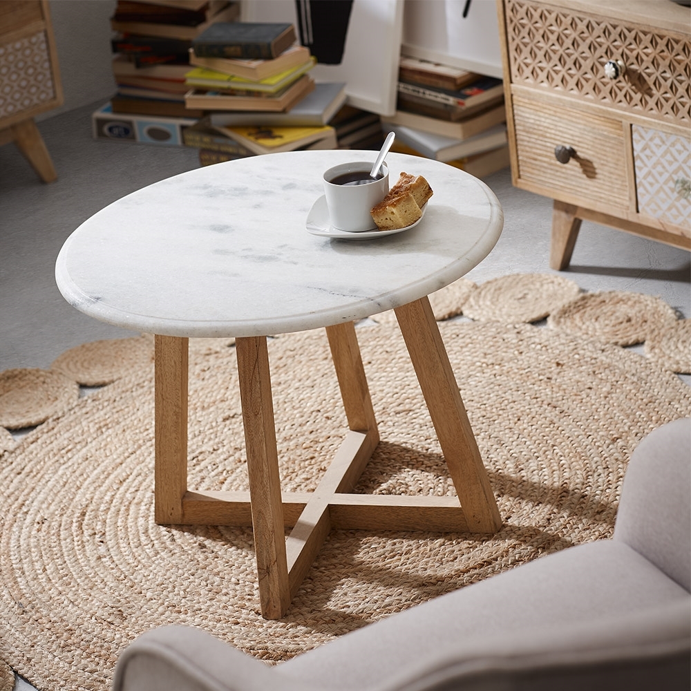 This gorgeous Hella Side Table will give your chosen space a touch of contemporary styling. Made from solid Marble and sustainably sourced Mango wood, this piece would be perfect in the living room, or could even be used as a bedside table. With the light stone and natural wood finish, you can pair this design with a multitude of interior styles. No matter your chosen space, set your drinks and a good book down on this beautiful piece of furniture design and put your feet up after a long day!.
