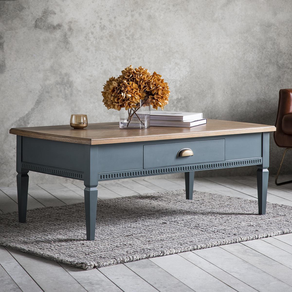 Hellas 120cm Rectangle Mahogany 1 Drawer Coffee Table - Blue