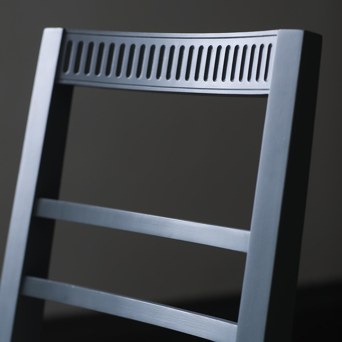 The Hellas Dining Chair in Storm is made using painted mahogany solids with an upholstered seat.