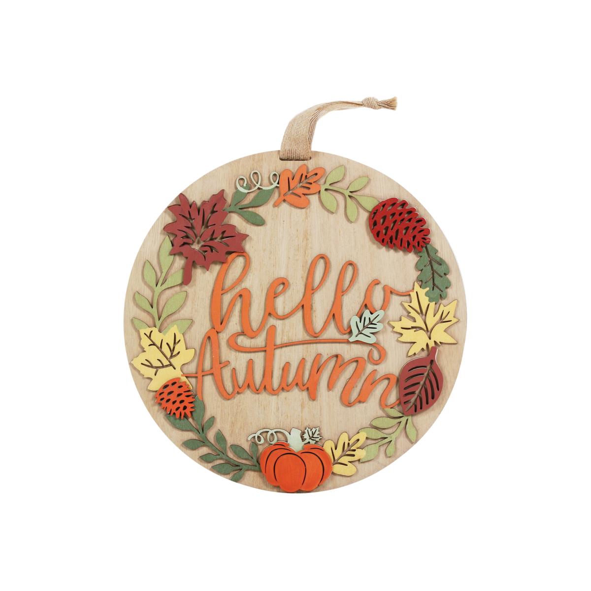 This beautiful Hello Autumn Wreath Plaque is a modern alternative to the traditional wreath design. Featuring a stunning array of leaves, pinecones and pumpkins, this lovely artwork is a fantastic way to celebrate the arrival of autumn in style. Finished with a tied ribbon, this plaque is ready to be hung with ease.