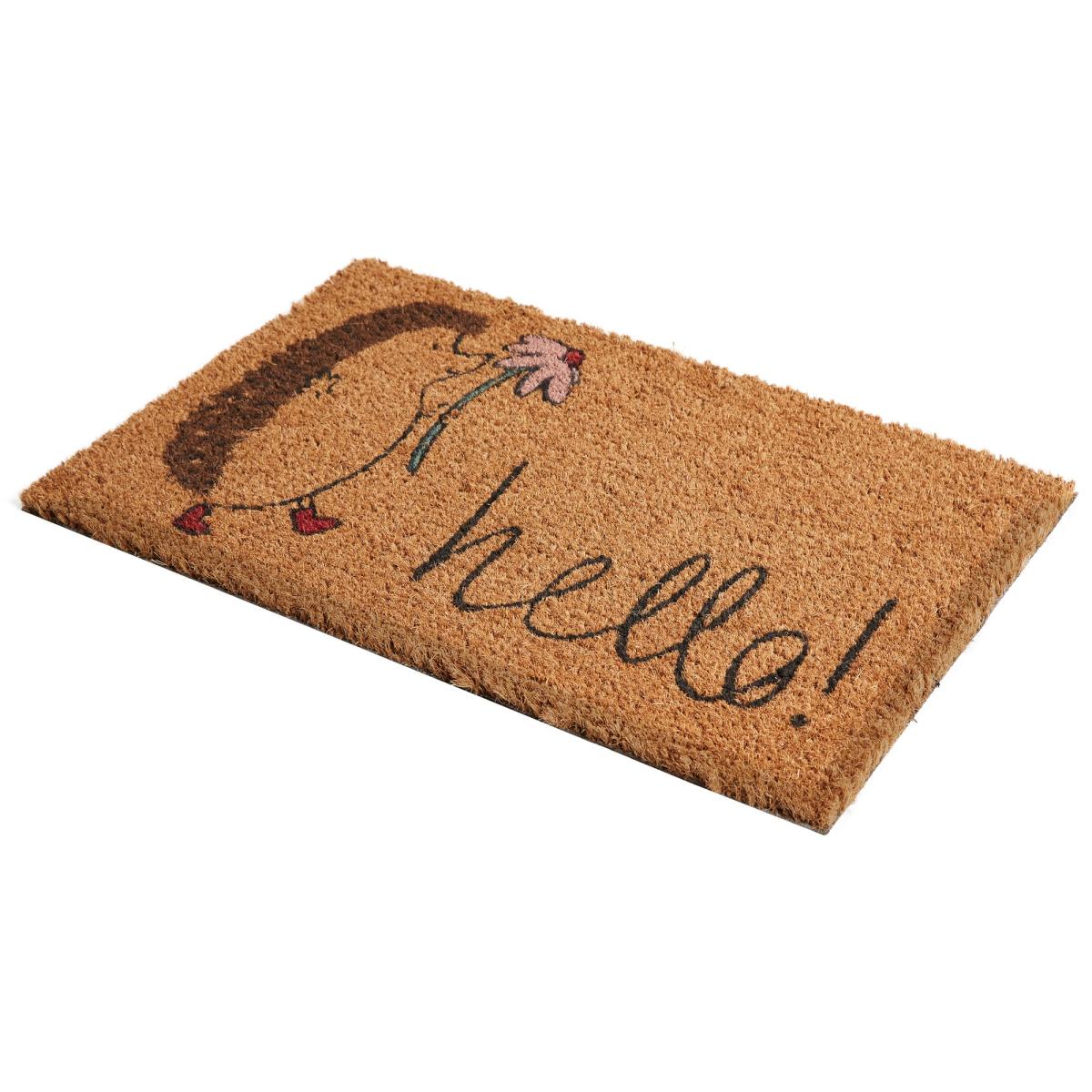 Add this adorable doormat to your doorway with a cute, friendly hedgehog and ‘hello!’ sentiment. This sturdy doormat is practical under a covered entrance as the coir fibre properties are resistant to mold and mildew and the thick vinyl backing also creates an anti-slip effect. 5-year guarantee included.